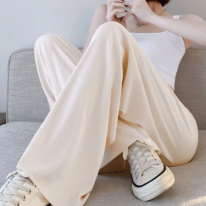 Брюки женские из вискозы с широкими штанинами, тонкие прямые штаны ...