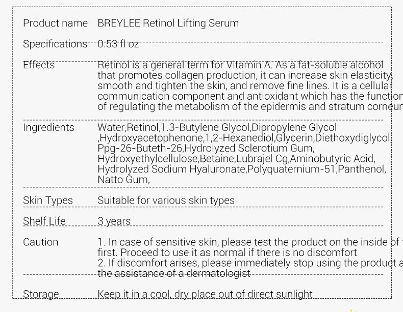 Название продукта: BREYLEE ретинол лифтинг сыворотка