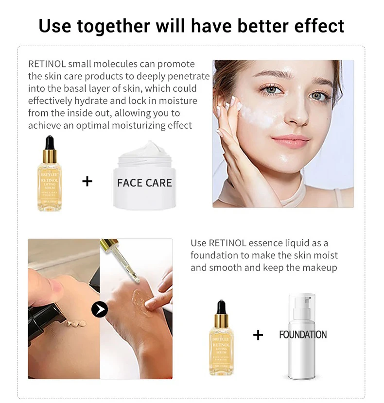 Эффекты: ретинол является общим термином витамина А. Как жирорастворимый спирт, который способствует выработке коллагена, он может повысить эластичность кожи, сгладить и подтянуть кожу и удалить тонкие линии. Это компонент клеточной связи и антиоксидант, который имеет функцию регулирования метаболизма эпидермиса и рогового слоя