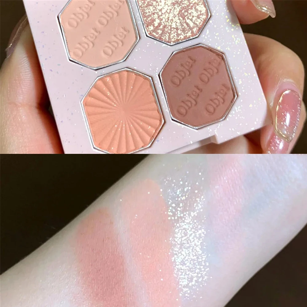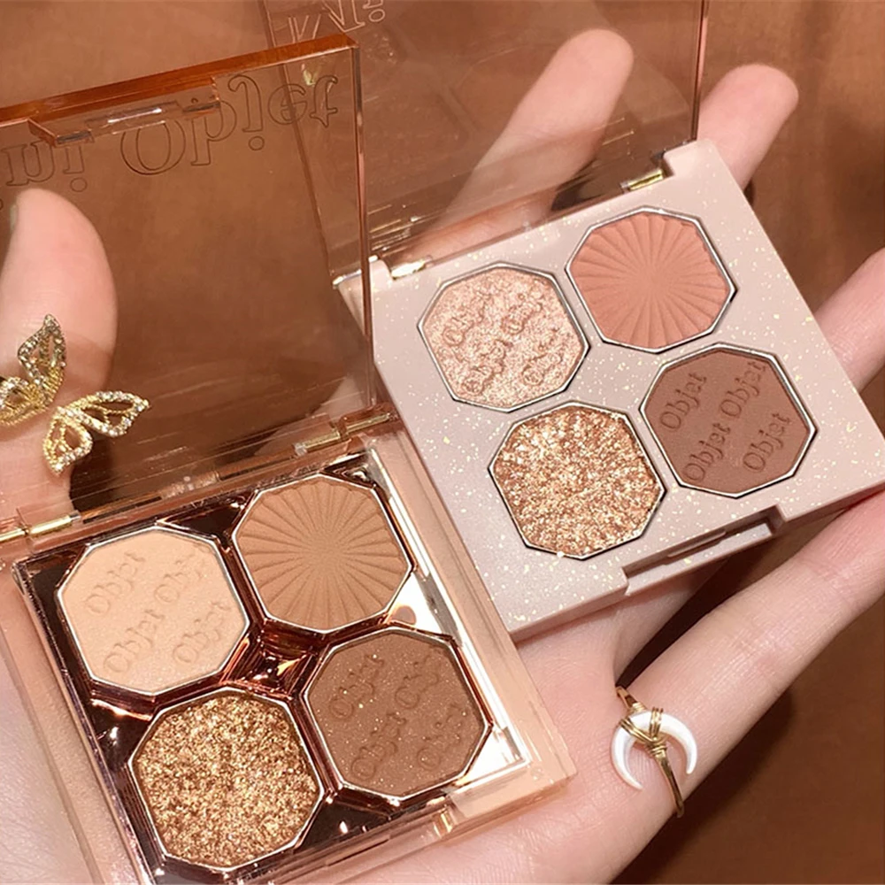 Палетка жемчужных теней для век четырех цветов, яркие матовые мерца...
