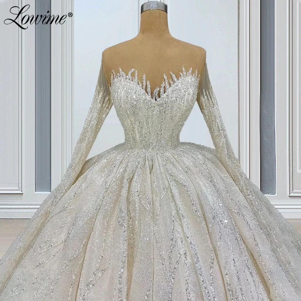 Мусульманские свадебные платья Lowime, пышные Блестящие Свадебные платья с длинным рукавом, модель 2021 от кутюр, Арабская иллюзия, женское свадебное платье