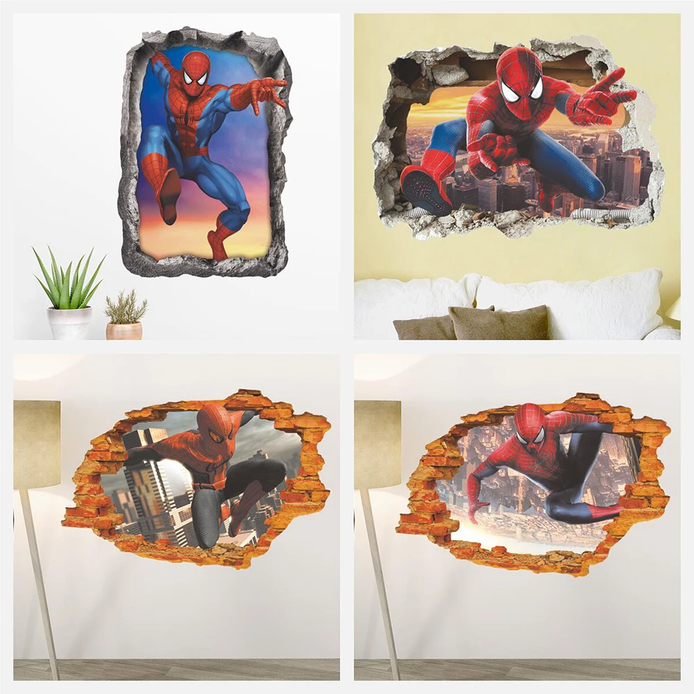 3D Дисней Человек-паук настенные наклейки для детской комнаты украш...