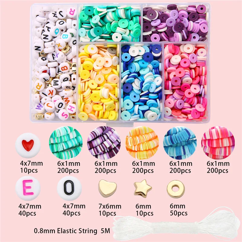 Набор Плоских бусин 6 мм из полимерной глины для изготовления браслетов и ожерелий, мягкие керамические разделительные бусины, набор сделай сам, подвеска для изготовления ювелирных изделий в стиле бохо