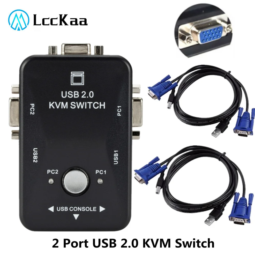 Квм-переключатель USB 2,0, 1920*1440, разветвитель VGA, 2 порта с двумя кабелями для клавиатуры, мыши, монитора, компьютера