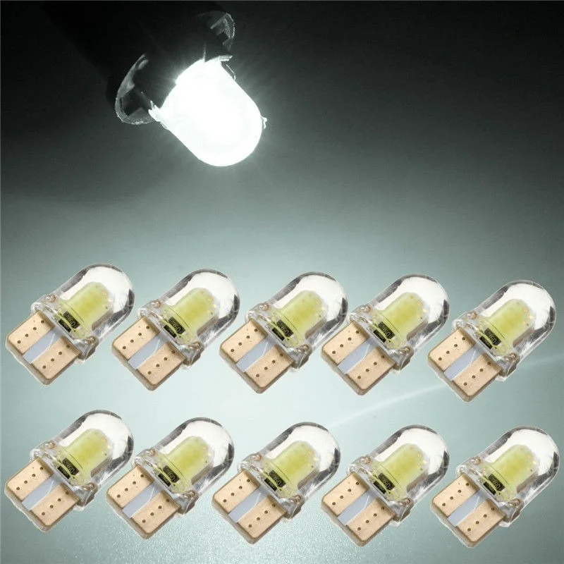 10 шт. Белый светодиодный ОД T10 W5W COB Canbus силиконовые автомоб...