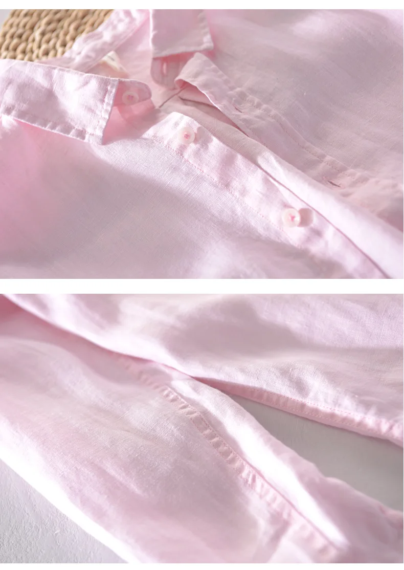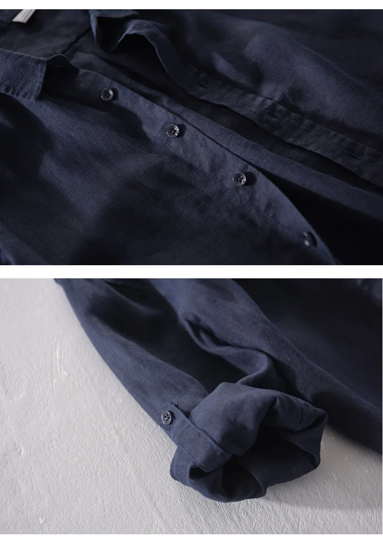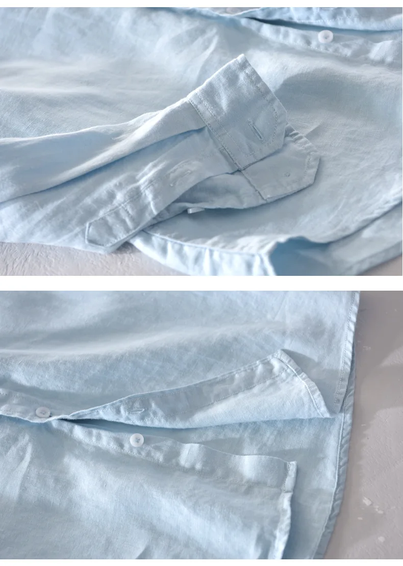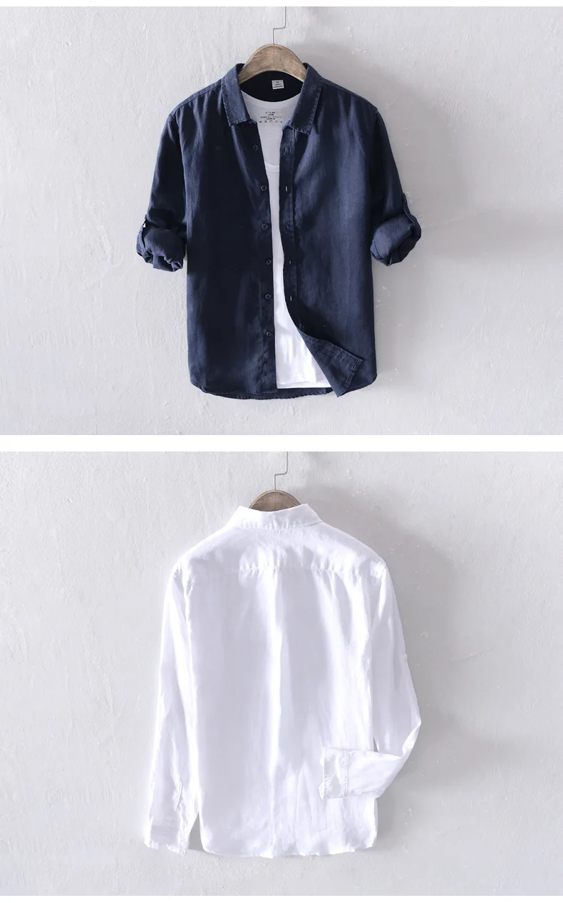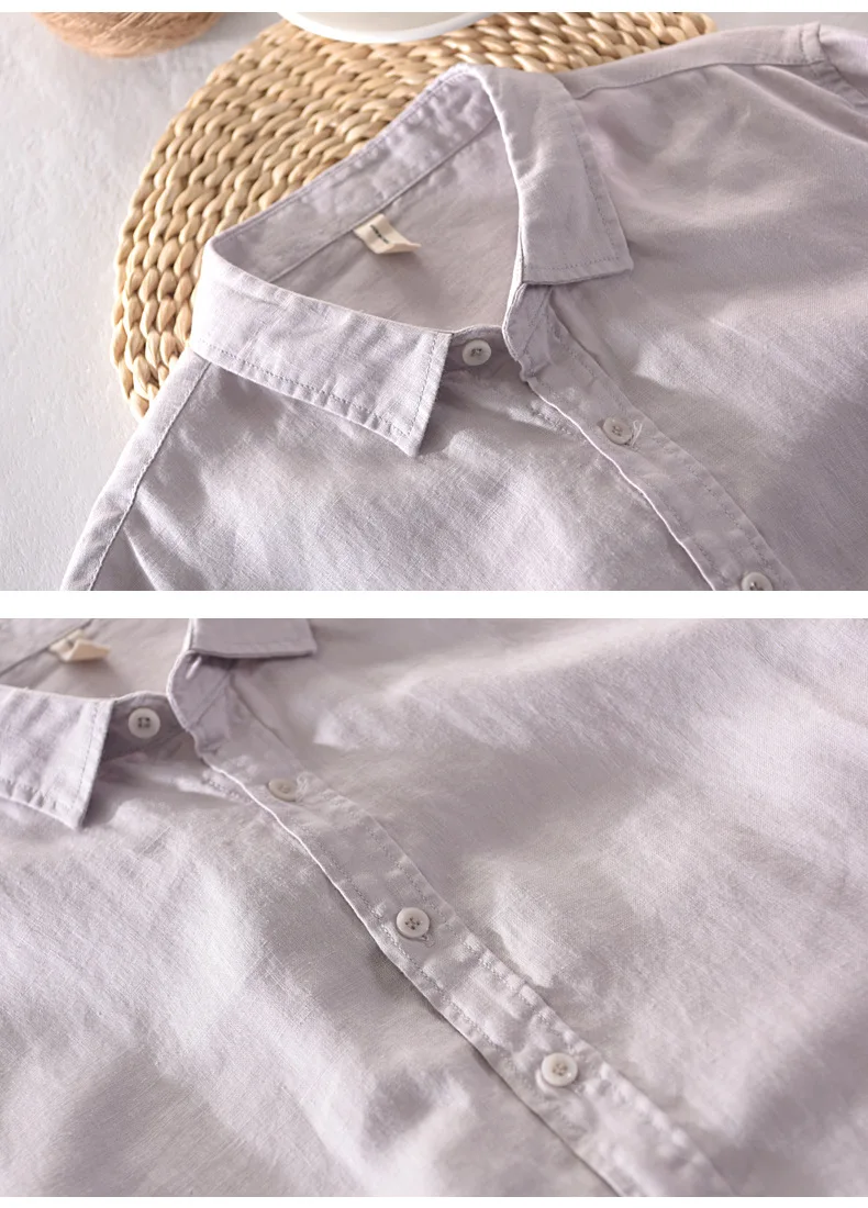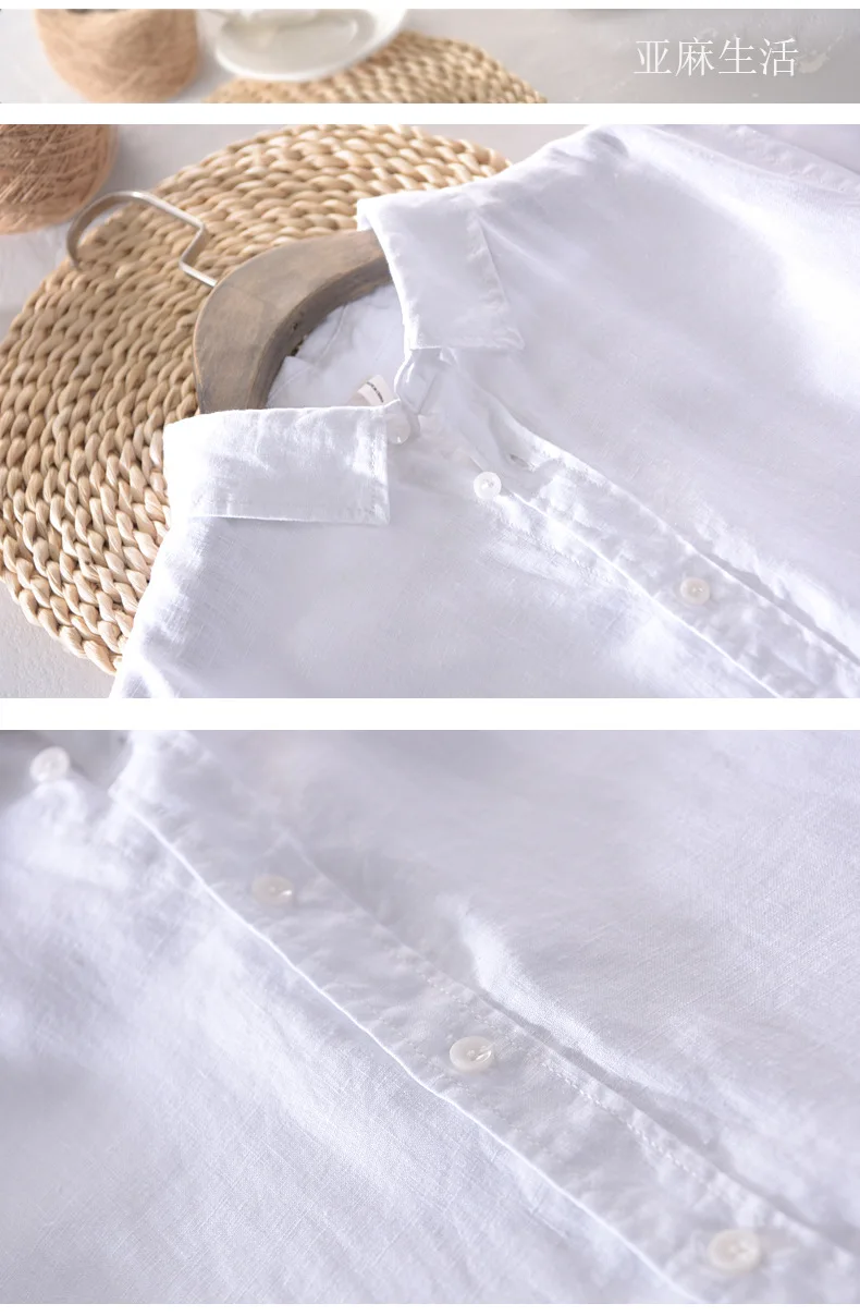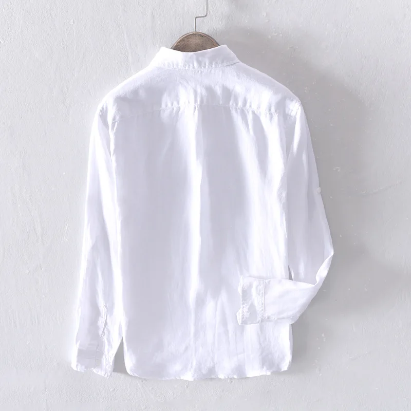 Мужская льняная рубашка, деловая Повседневная белая классическая рубашка с длинным рукавом и отложным воротником, 610