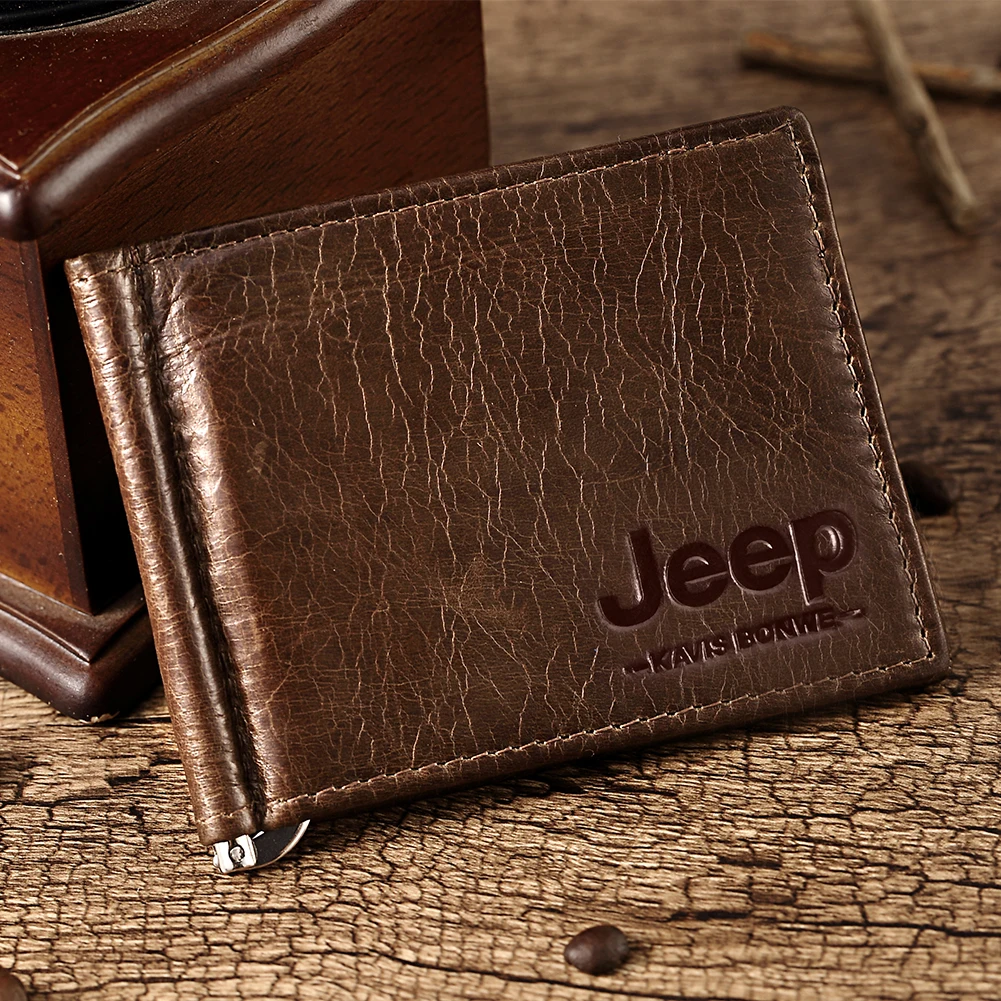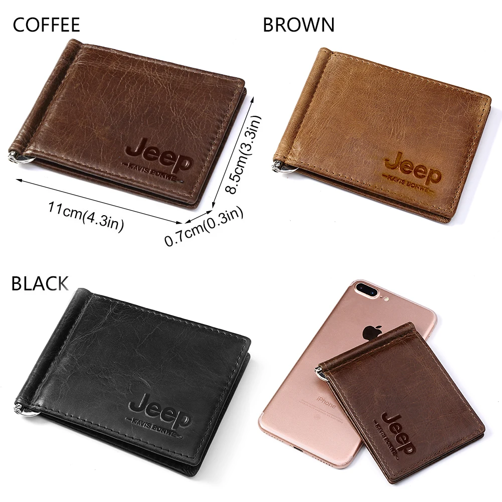 Повседневный однотонный мужской тонкий кошелек двойного сложения из натуральной кожи с металлическим зажимом Мужской кошелек для удостоверения личности и кредитных карт держатель для наличных