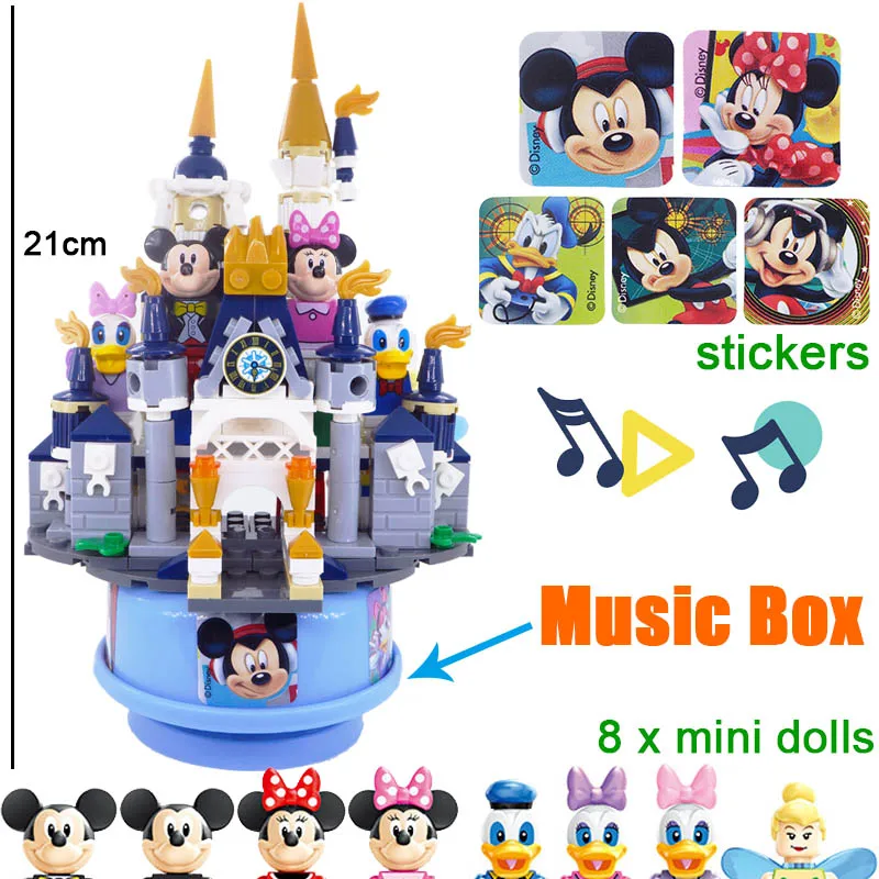 Новейший Диснейленд замок миниатюрные модельные блоки Вы можете выбрать один с музыкальной коробкой для большего удовольствия Есть также 8 мини-кукол disney Блоки совместимы с Ieg0 большинства брендов Лучший рождественский подарок для мальчиков и девочек 100% абсолютно новый, высокое качество Изготовлен из АБС-пластика, экологически чистый материал Размер, как показано на фотографии Упаковано в хорошая подарочная упаковка Может быть подарком или Прямая поставка Для оптовых продавцов, свяжитесь со мной по лучшей цене