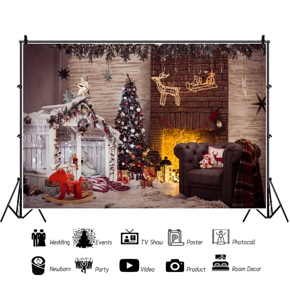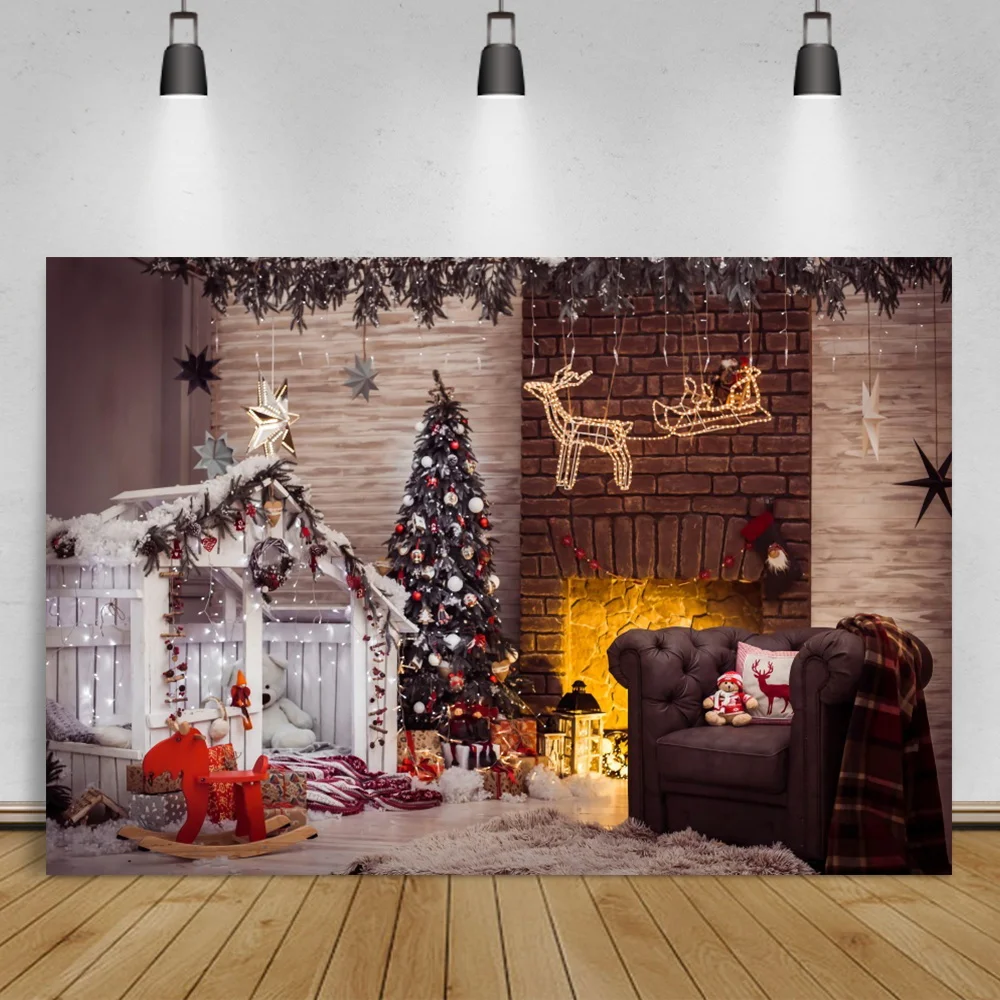 Фон для фотосъемки с изображением рождественской елки камина интерь...