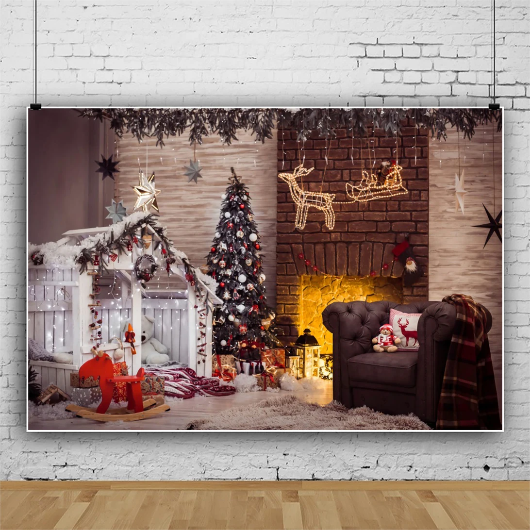 Рождественский кирпич Laeacco, фон для фотосъемки с изображением деревянной стены камина, интерьера детской портретной съемки