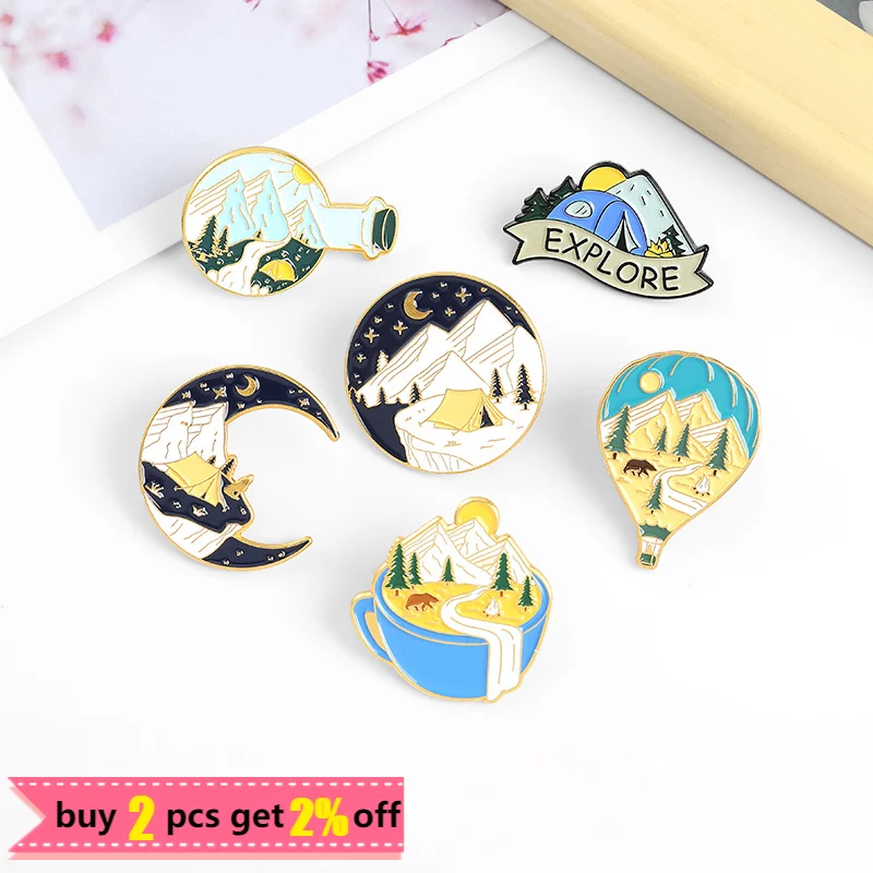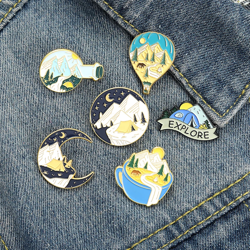 Эмалированная заколка в виде гор, значки звездной ночи, броши в вид...