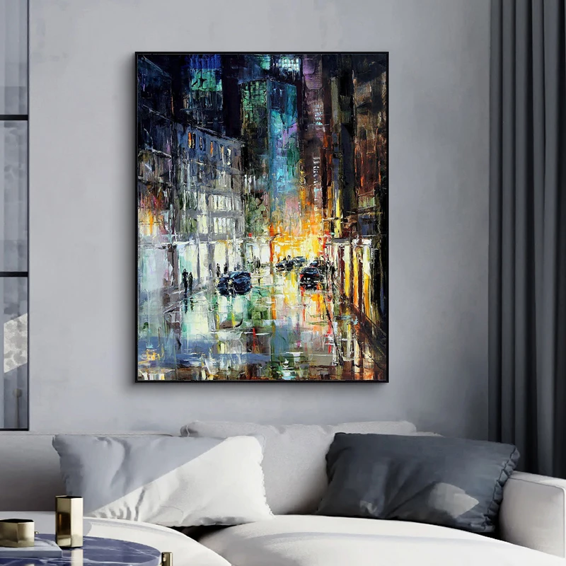 Абстрактные городские картины на холсте Citysacape At Night, плакаты и принты, настенные картины для гостиной, украшение для дома