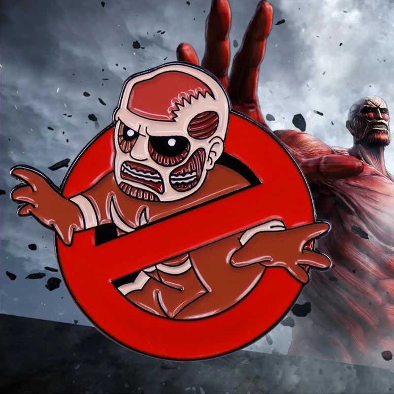 Значок с эмалью Атака Титанов, Охотники за привидениями, аниме, злодеи, плохие парни, гигантский значок