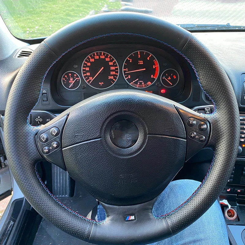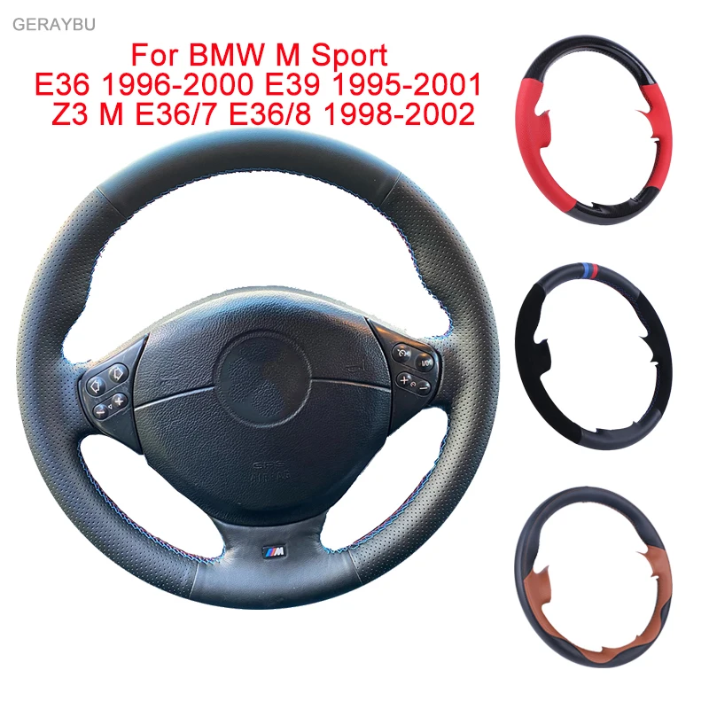 GERAYBU изготовленный на заказ DIY черный кожаный сшитый вручную чехол рулевого колеса автомобиля для BMW M Sport E36 1996-2000 E39 1995-2001 Z3 M E367 E368