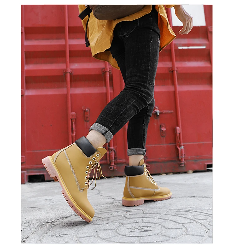 Мужские ботинки на толстой подошве, повседневные, желтые, размера плюс, в британском стиле, Осень-зима, 2021