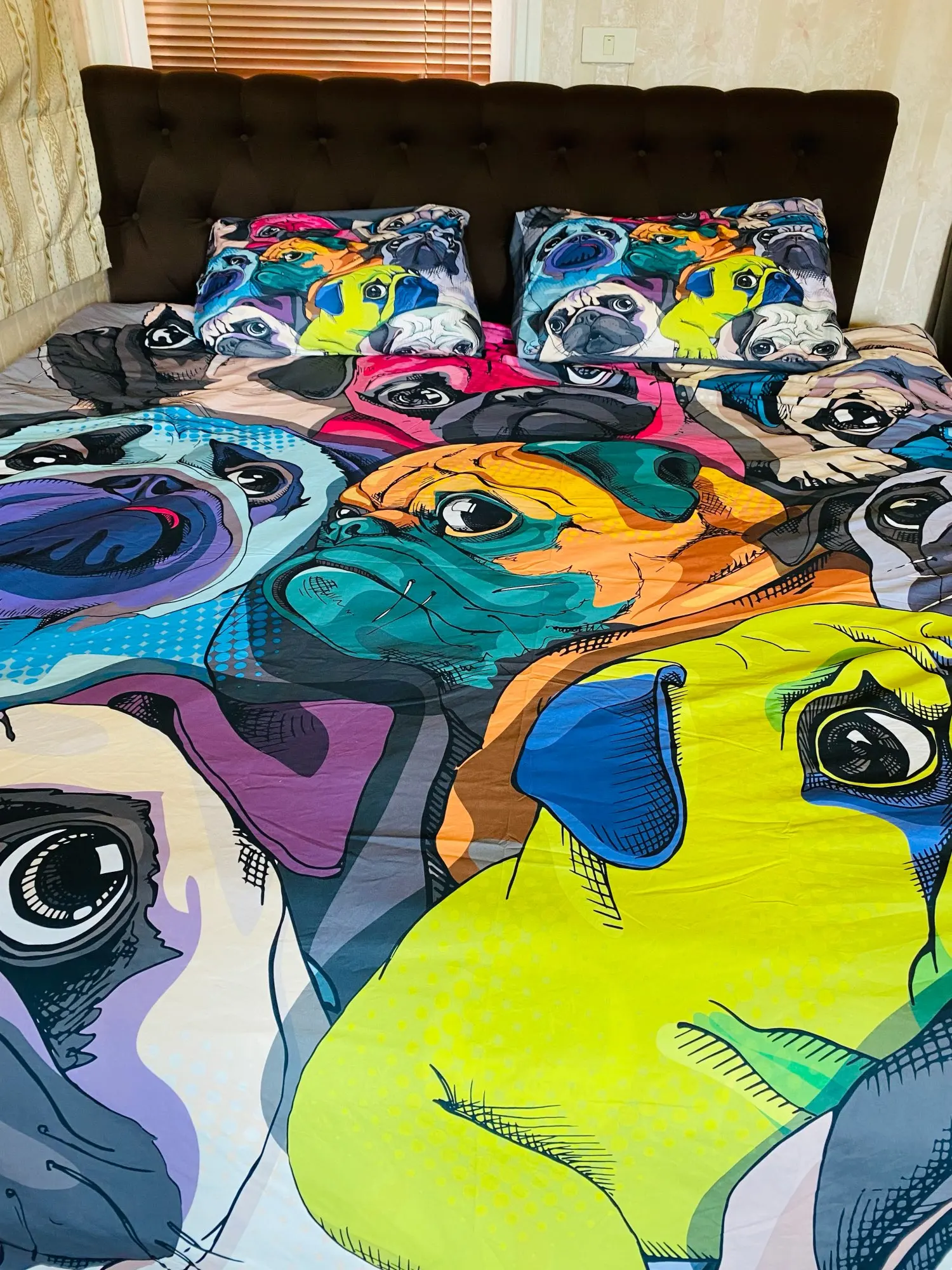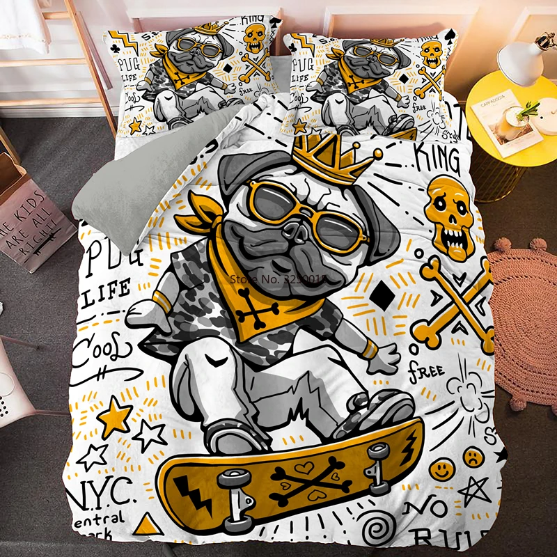 Комплект постельного белья из 23 предметов, домашний текстиль, с рисунком милого мопса, собаки, пододеяльник, наволочка, роскошное постельное белье с мультяшными животными, размеры QueenKing