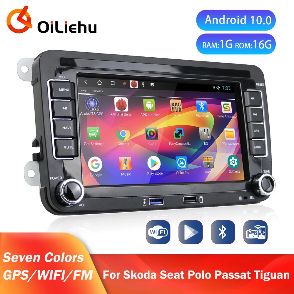 Автомагнитола OiLiehu, мультимедийный плеер на Android, с GPS, для GolfPoloTiguanPassat b6b7SEATLeonSkodaOctavia, типоразмер 2 Din