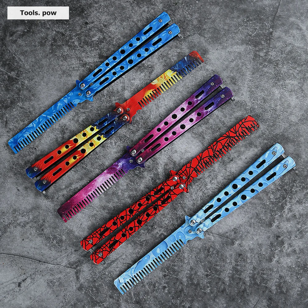 Новый стиль складной нож-бабочка расческа из нержавеющей стали тренировочный гребень с бабочкой, расческа парикмахерские инструменты