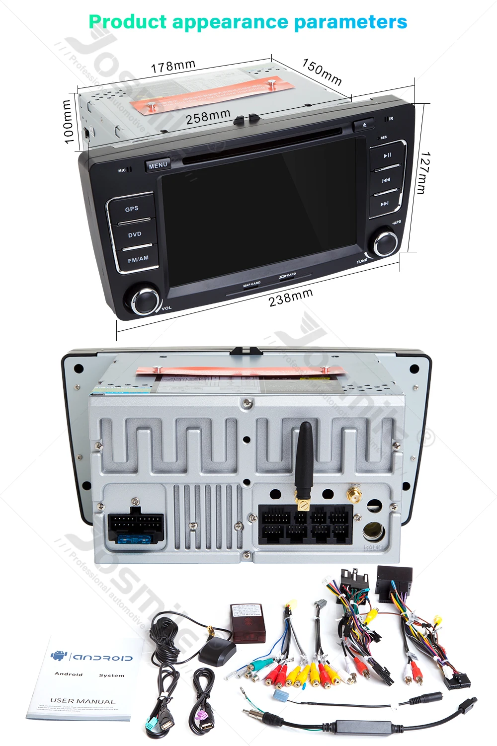 SKODA Octavia 2009-2013 Yeti 2008-2014Лицевая панель: 258*238*127 ммХотя мы приложили все усилия, чтобы убедиться, что данное устройство будет совместимо с указанными транспортными средствами, пожалуйста, проверьте год, размеры и форму центральной консоли ваших транспортных средств перед покупкой.