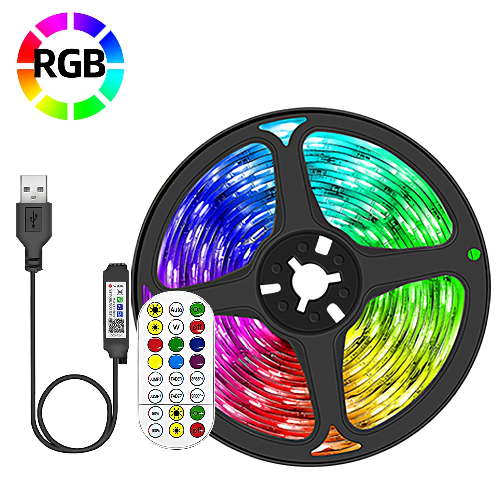 Светодиодная ленсветильник RGB 5050, гибкая лампа-лента с диодами, USB-кабель, управление через приложение для телефона, 5 в постоянного тока, настенный, настольный экран, светильник ка телевизора, 1-30 м
