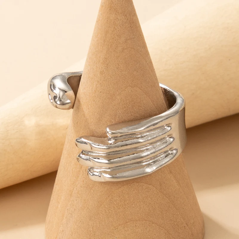 Кольцо женское серебристое с пятью пальцами в стиле ретро