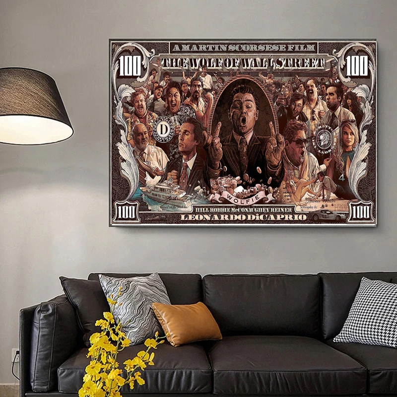 Картина на холсте волк на Уолл-стрит Леонардо Ди Каприо денежный по...