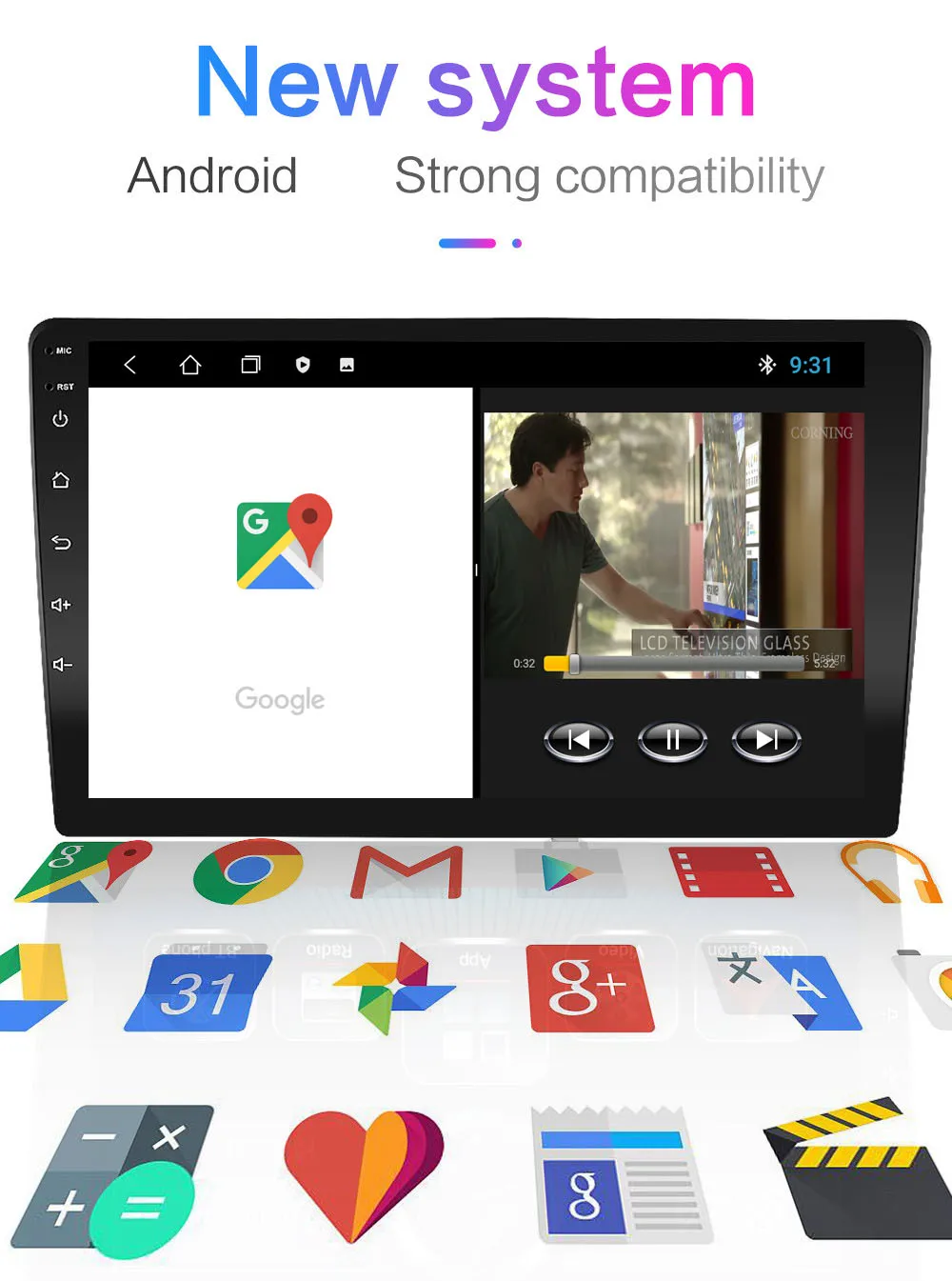 Универсальная Автомагнитола 2 Din, 9 дюймов, 10 дюймов, Android, мультимедийный видеоплеер, 2din, GPS, Bluetooth, совместимый стерео, аудио, видео плеер