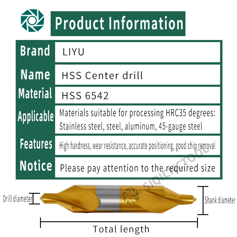 Тип: центр сверлаМатериал: Высокоскоростная стальПокрытие: титановое покрытиеГрадусы: 60Размер включает:SKU1: Материал: HSS4341 (1,0, 1,5, 2,0, 2,5, 3,0, 5,0) 6 палочек, подходит для обработки материала s с низкой твердостьюSKU2: Материал: HSS6542 (1,0, 1,5, 2,0, 2,5, 3,0, 5,0) 6 упаковок, подходит для обработки алюминия, меди и железаSKU3: Материал: HSS4341 титановое покрытие (1,0, 1,5, 2,0, 2,5, 3,5, 5,0) 6 упаковок, подходит для обработки материала s с низкой твердостьюSKU4: Материал: HSSM35 (1,0, 1,5, 2,0, 2,5, 3,0, 5,0) 6 палочек, подходит для обработки стальных деталей, нержавеющей стали и других металлических материалов