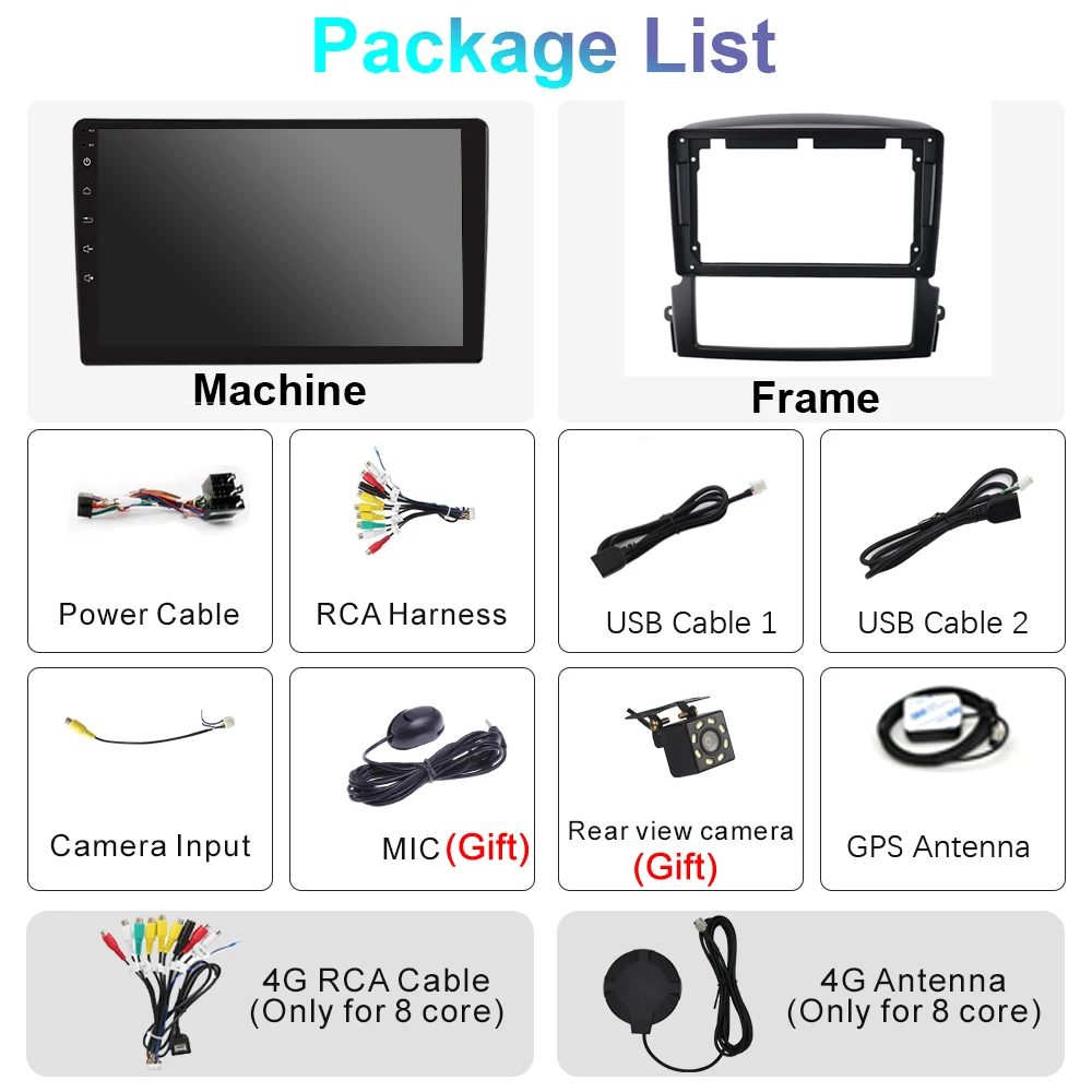 Подключаемый разъем для sim-карты с 4G антенной (только 8 CoreVersion поддерживает функцию 4G)Поддержка Wi-Fi и Wi-Fi точки доступа.Поддержка онлайн-приложения: Playstore, Youtube, Maps...
