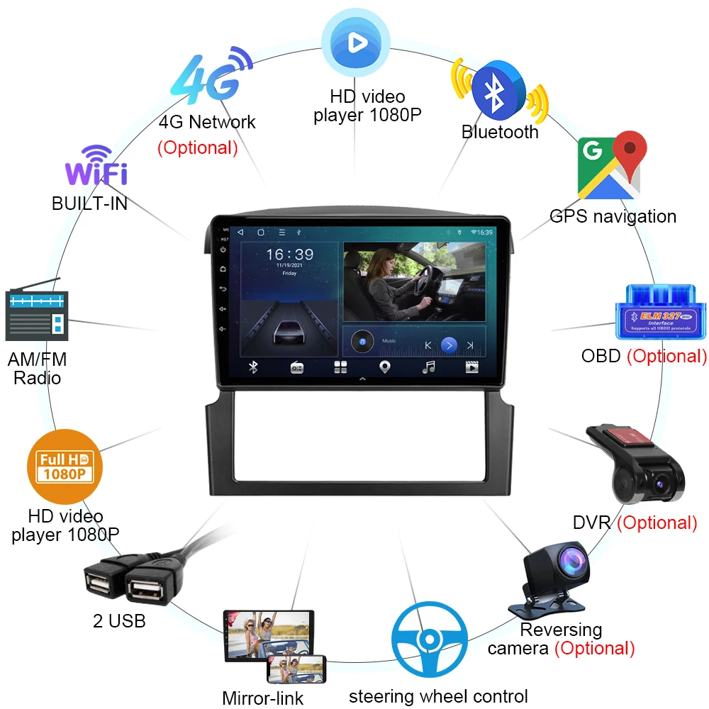 Основные функции:1,Bluetooth для handfree, телефонная книга2. Воспроизведение музыки с bluetooth(A2DP)3, поддержка обратной камеры/запись привода DVR от заднего USB4. Bluetooth OBD и Mirrorlink: Поддержка5, холодный старт около 17 секунд6. Встроенный микрофон: Поддержка7. Управление рулевым колесом: Поддержка8,Wi-Fi: Встроенный/через телефон в качестве Wi-Fi горячей точки.9, поддержка приложений: многие, например: Google Play Store, Skype, Facebook, YouTube, Twitter, Waze и т. Д.11, поддержка 1080P + Поддержка музыки без потерь12: поддержка GPS карты, такие как Google online Map Yandex.navi/Waze on Line CityGuide.13, мульти OSD Languaes: английский/русский/французский/немецкий/испанский/итальянский/арабский/Португальский/Турецкий/тайский/Польский/иврит и т. Д. 180 + язык14, этот блок не имеет dvd-механизма и не может воспроизводить dvd-диски. Название этого устройства-dvd-плеер, но на самом деле это полноэкранный автомобильный блок. Перед покупкой, пожалуйста, узнайте об этом15. Выберите логотип автомобиля, который вам нравится.16,RCA кабели для сабвуфера17, легко установить, просто подключи и играй