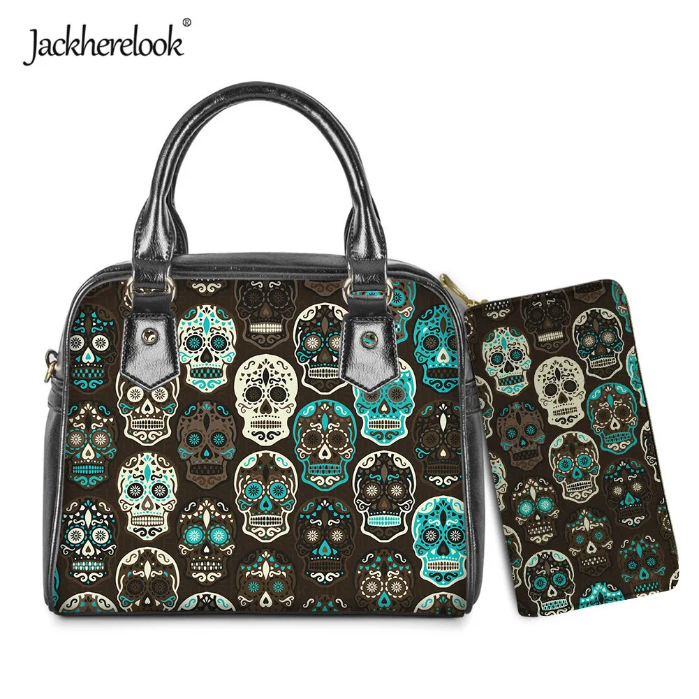 Jackherelook крутая Дизайнерская Женская Роскошная сумочка с черепом PU кошелек 2 шт.компл. женская сумка через плечо сумка-мессенджер кошелек Bolsos Mujer