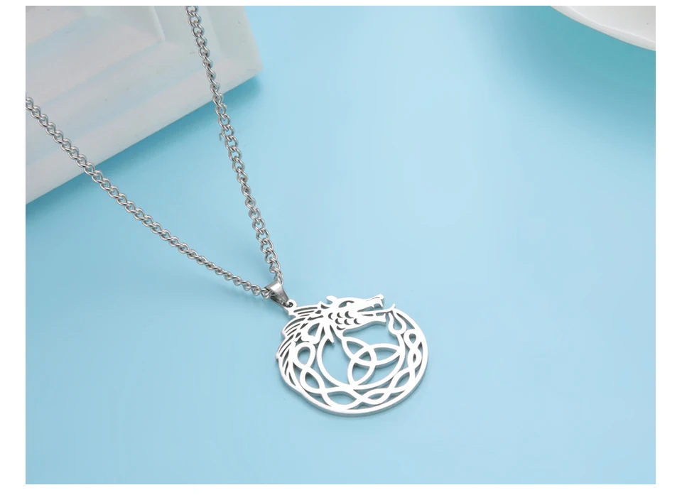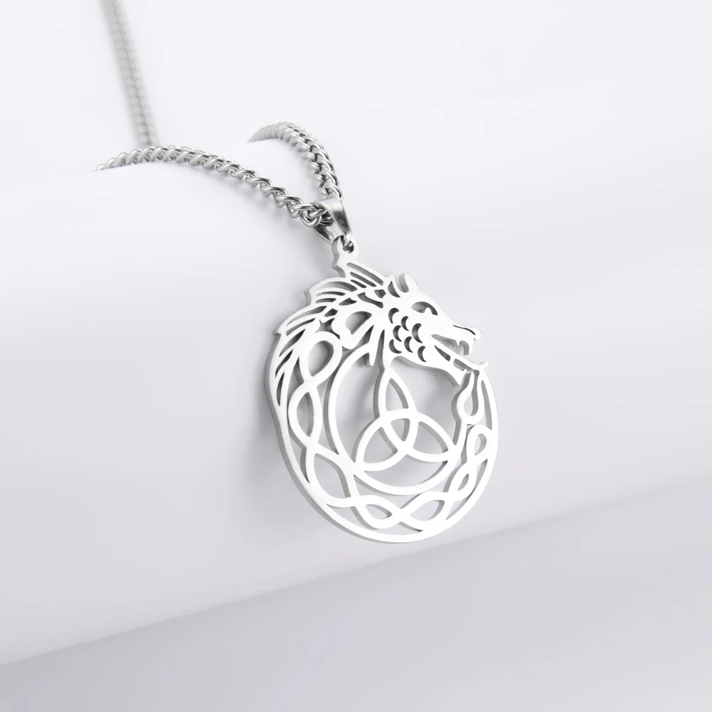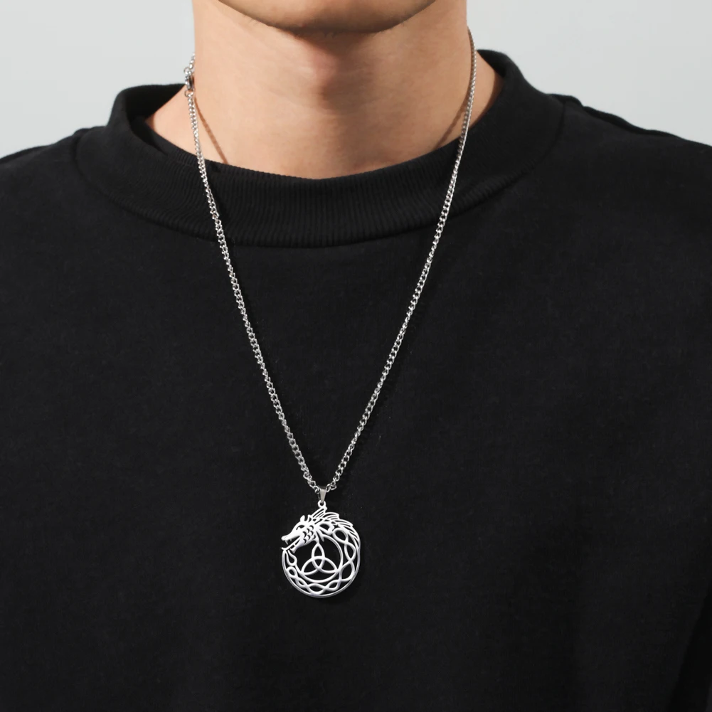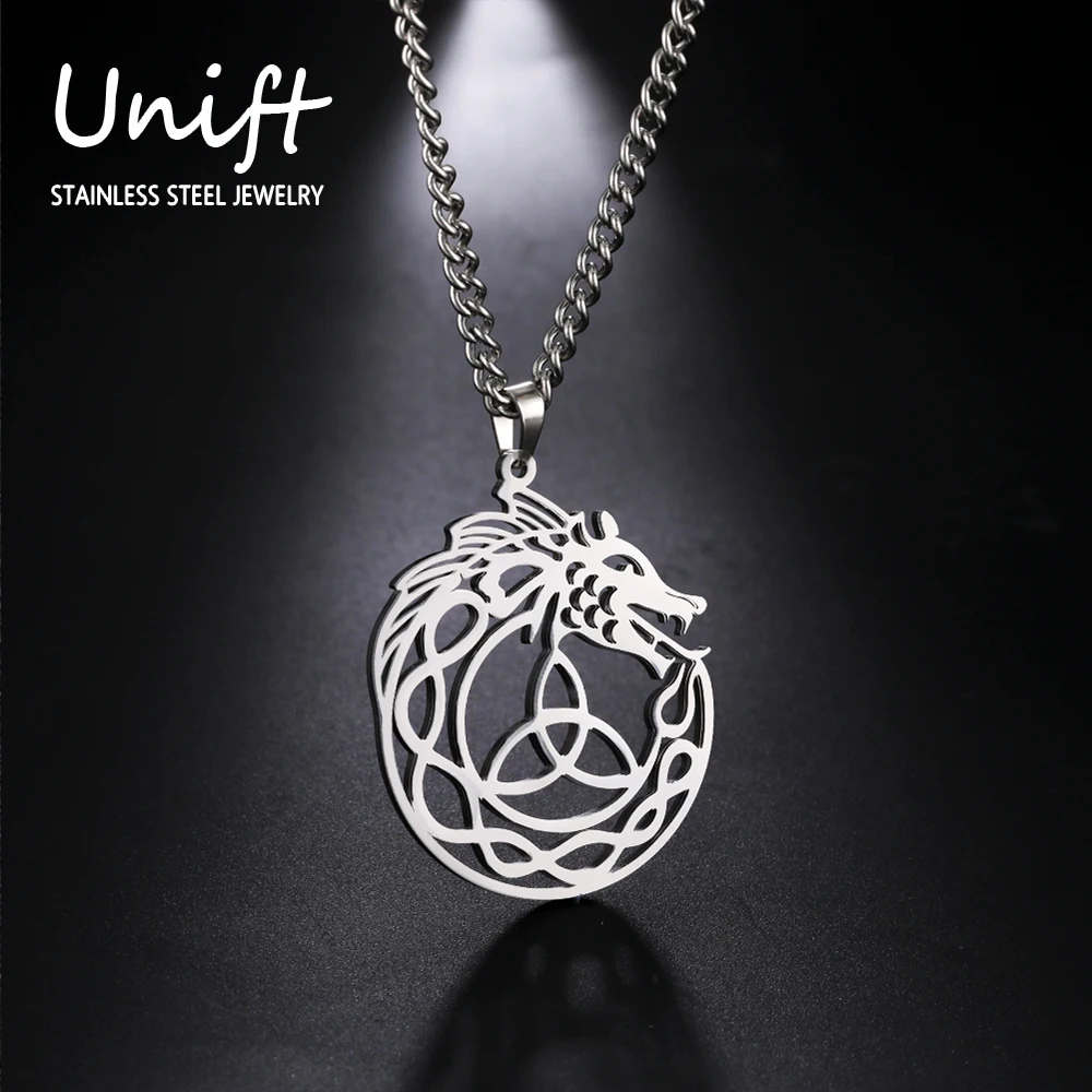 Винтажное колье Unift с драконом викингов и кельтских узелков для женщин и мужчин, круглая подвеска из нержавеющей стали, цвет серебристый