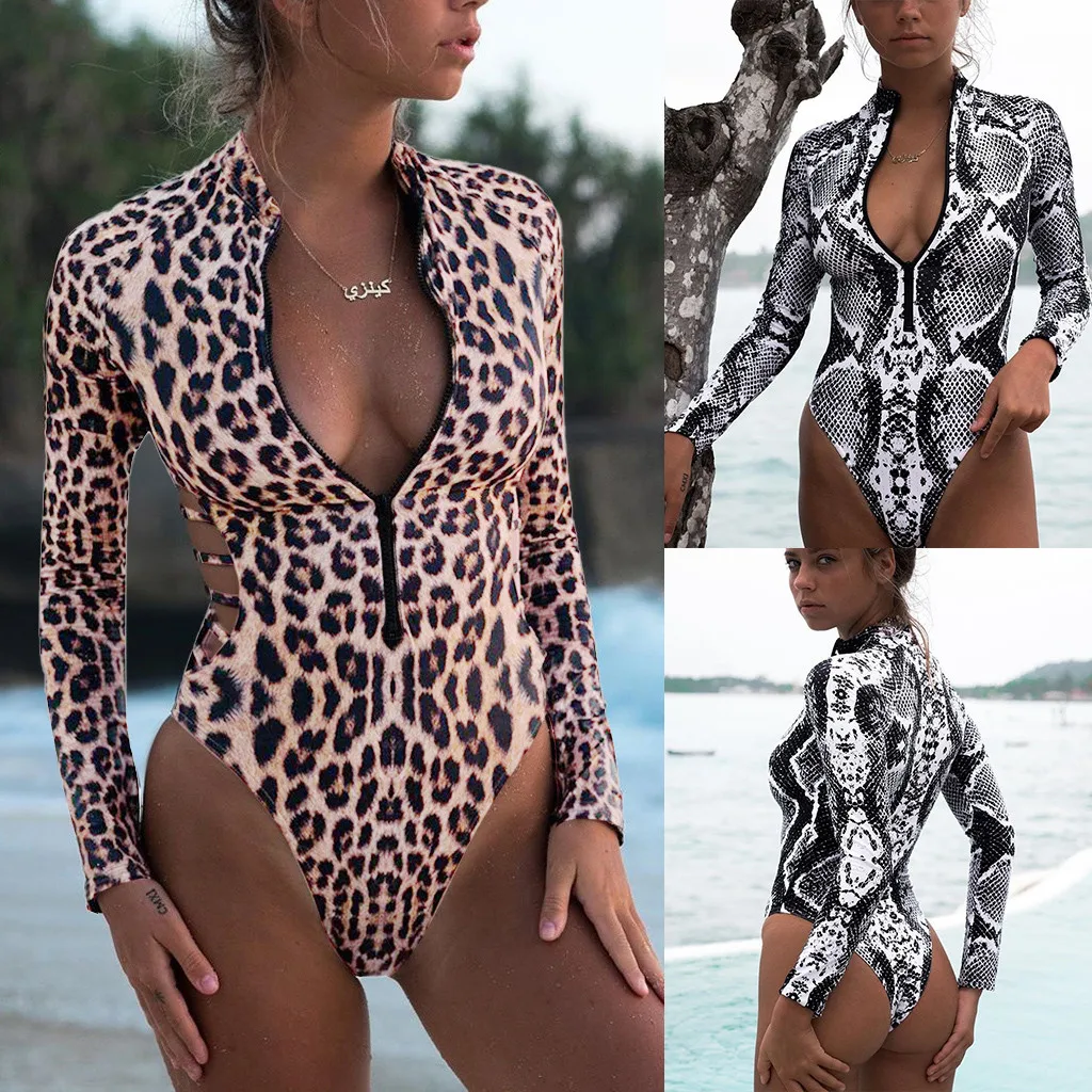 Женский слитный купальник бикини 2021 женский сексуальный купальник монокини с принтом заполненный бюстгальтер на молнии боди купальный костюм Горячая Пляжная одежда