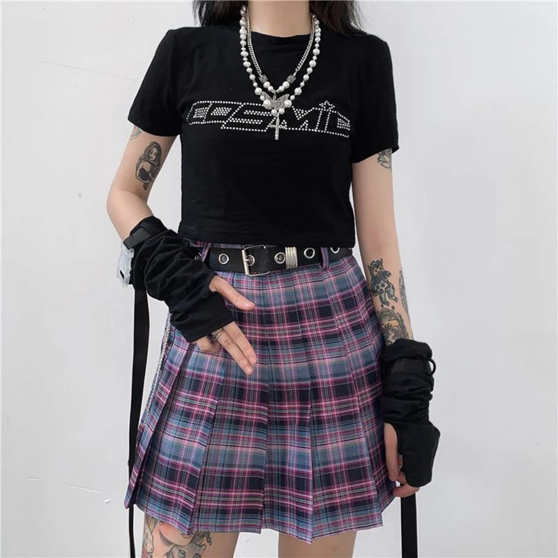 Женская клетчатая мини-юбка с высокой талией, в стиле Харадзюку