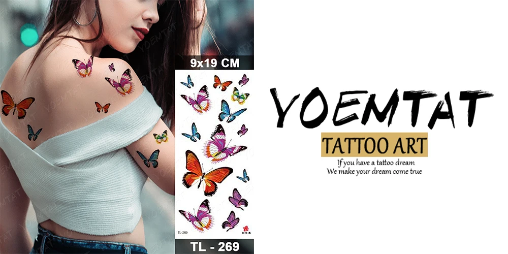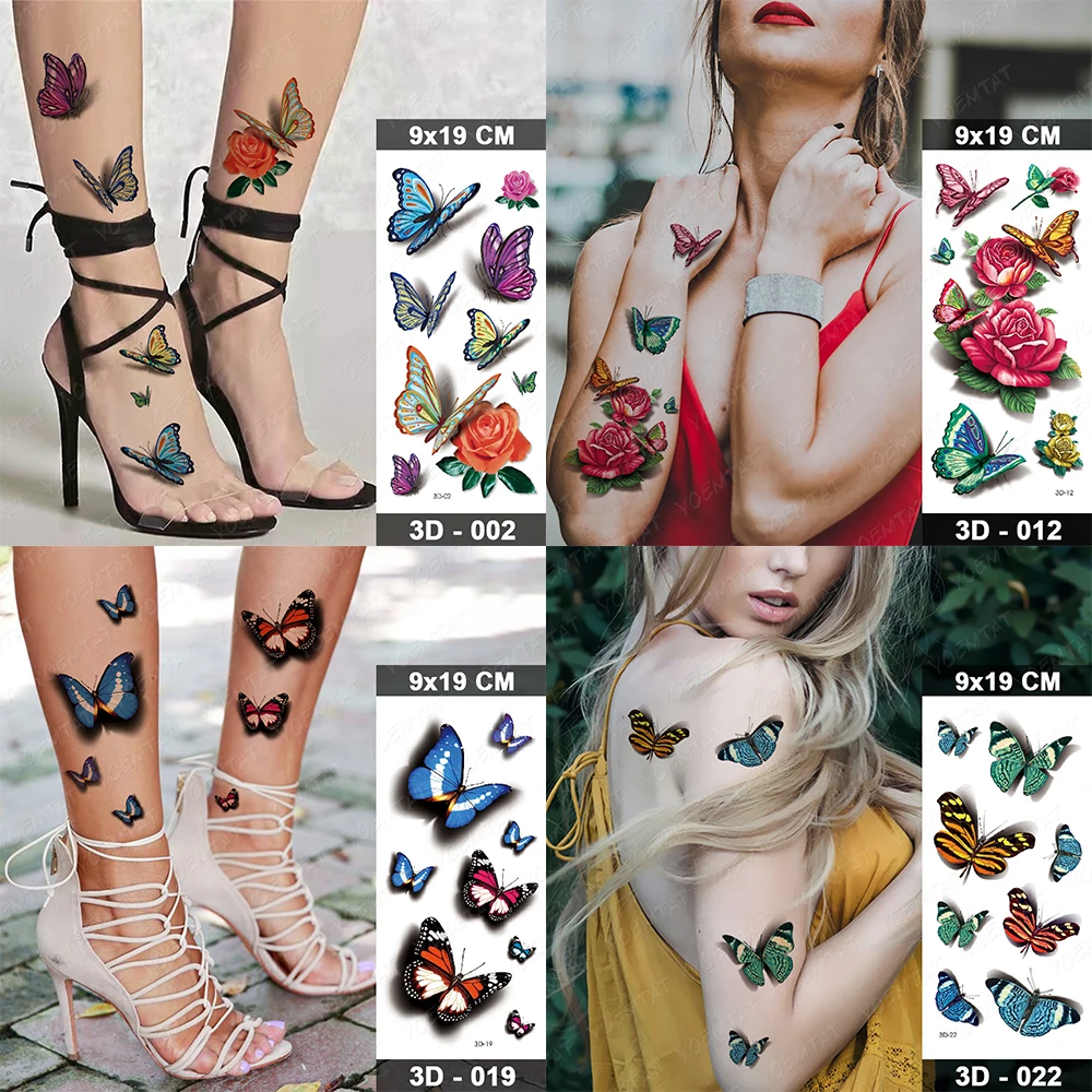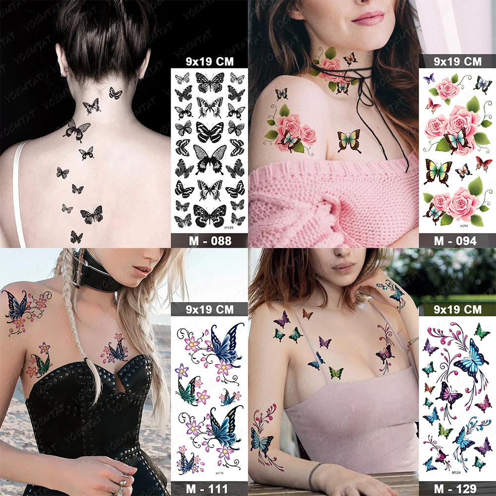 Передаваемый наклейки переводные татуировки тату временные женские Водостойкие временные тату-наклейки, черная бабочка, моль, роза, цветок, женская сексуальная шея, талия, боди-арт, искусственная татуировка для мужчин