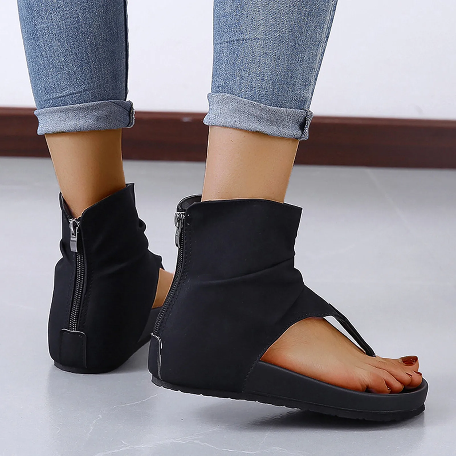 Женские сандалии-гладиаторы на плоской подошве, замшевые пляжные сандалии с открытым носком, женские туфли на молнии в римском стиле, Водная обувь, шлепанцы, лодочки