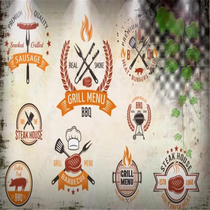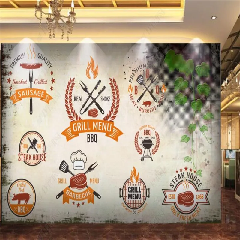 Пользовательский размер пивной бар барбекю Ресторан промышленный Декор серый фон настенная бумага 3D барбекю кебаб снэк-бар настенная бумага 3D