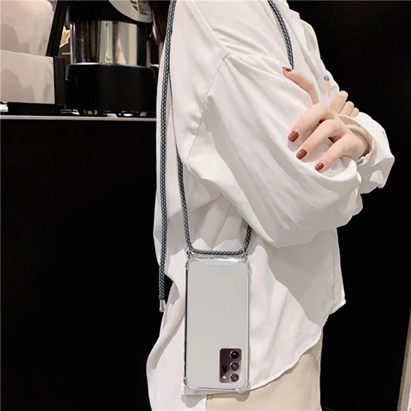 Чехол с ремешком для телефона Samsung Galaxy A32 4G A22 A42 A52 A72 5G, прозрачный чехол с ожерельем и веревкой для samsung s20plus s21 s21 ultra, чехол