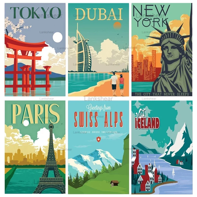 Винтажный постер для путешествий, металлические жестяные знаки, Нью-Йорк, Париж, Токио, ландшафт, семейный бар, паб, клуб, домашняя тарелка, Настенный декор