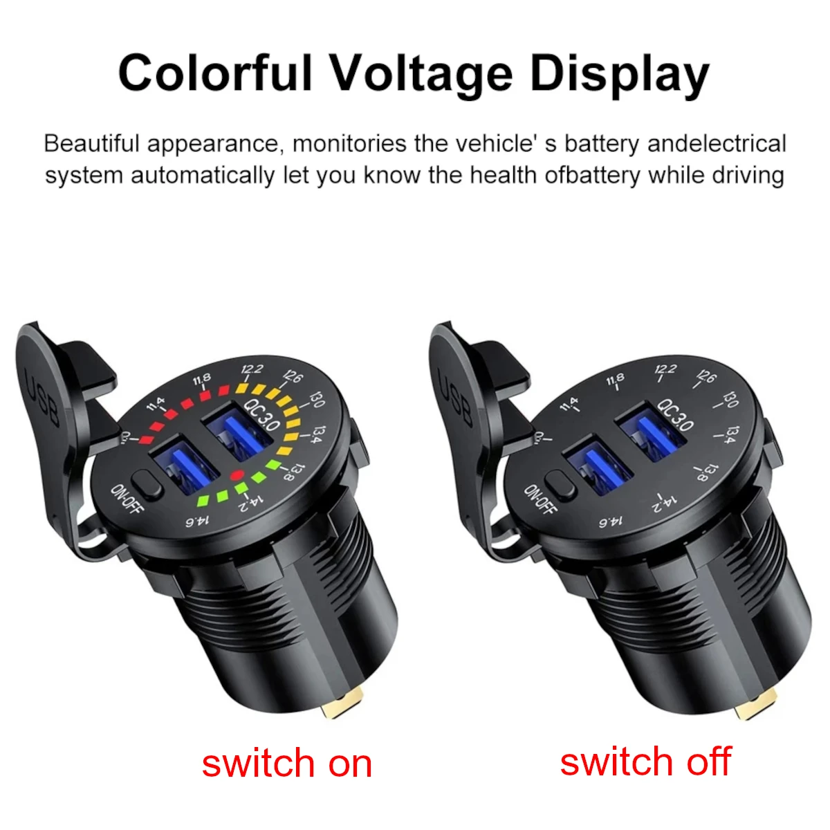 Разъем зарядного устройства PD Type-C QC3.0 4.8A USB, вольтметр расхода с переключателем, быстрая зарядка для 12 В, автобуса, лодки, мотоцикла, грузовика, RV