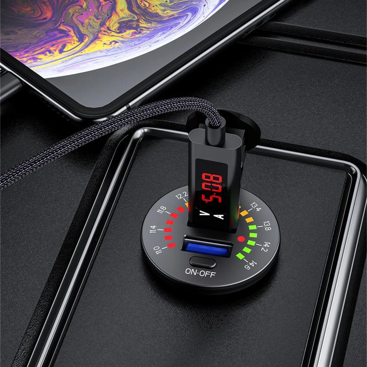1 зарядное устройство с двойным портом и светодиодный вольтметр1X60 см кабель питания с предохранителем 10A