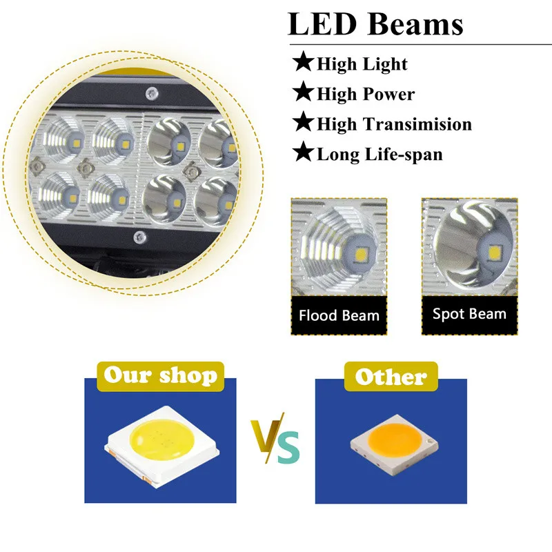 ★В этой светодиодной планке используется высококачественный светодиодный луч, который очень яркий для вождения и прослужит очень долго.