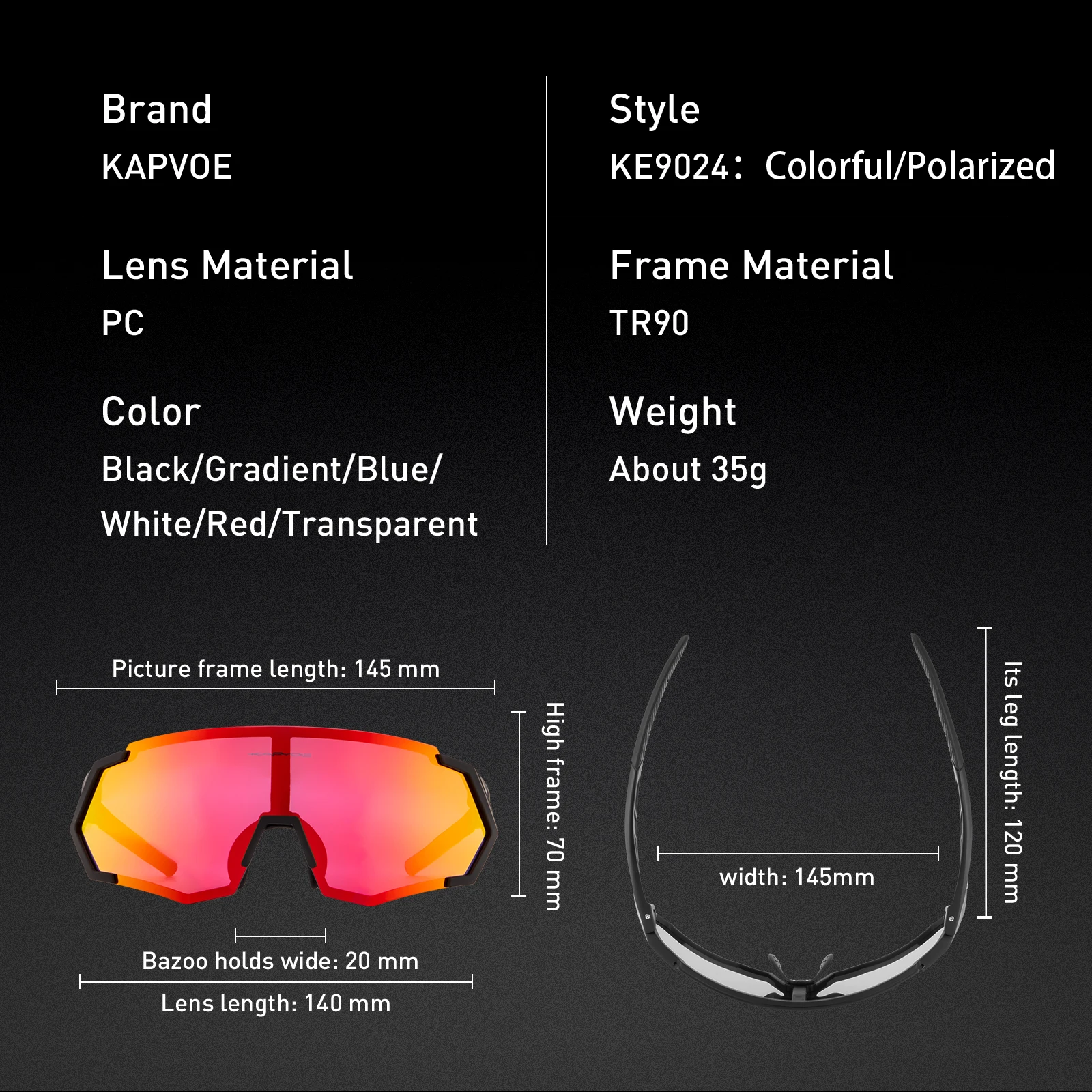 Велосипедные очки Kapvoe UV400 Перед лицом самых сложных упражнений и событий, их уникальное качество и стиль. Эта модель ориентирована на спорт, но имеет гибридный дизайн и может использоваться случайно. С защитой UV400, поликарбонатной структурой и поляризатором. В дополнение к одному объективу, он также имеет максимальную видимость. Вся конфигурация: 1 * Основной цветной объектив 1 * Рамка для близорукости 1 * чехол для очков 1 * сумка для очков 1 * ткань для очков Характеристики и привлекательность: -Линзы с защитой UV400 (UV-A и UV-B) -Дымчатые Многослойные линзы (высокая ударопрочность) -Аэродинамический дизайн изогнутых рамок (больше стилей) -Анатомия (большая фиксация и безопасность) -Предоставляется чемодан и фланель для транспортировки -Чрезвычайно светильник • Вес: 30 граммов