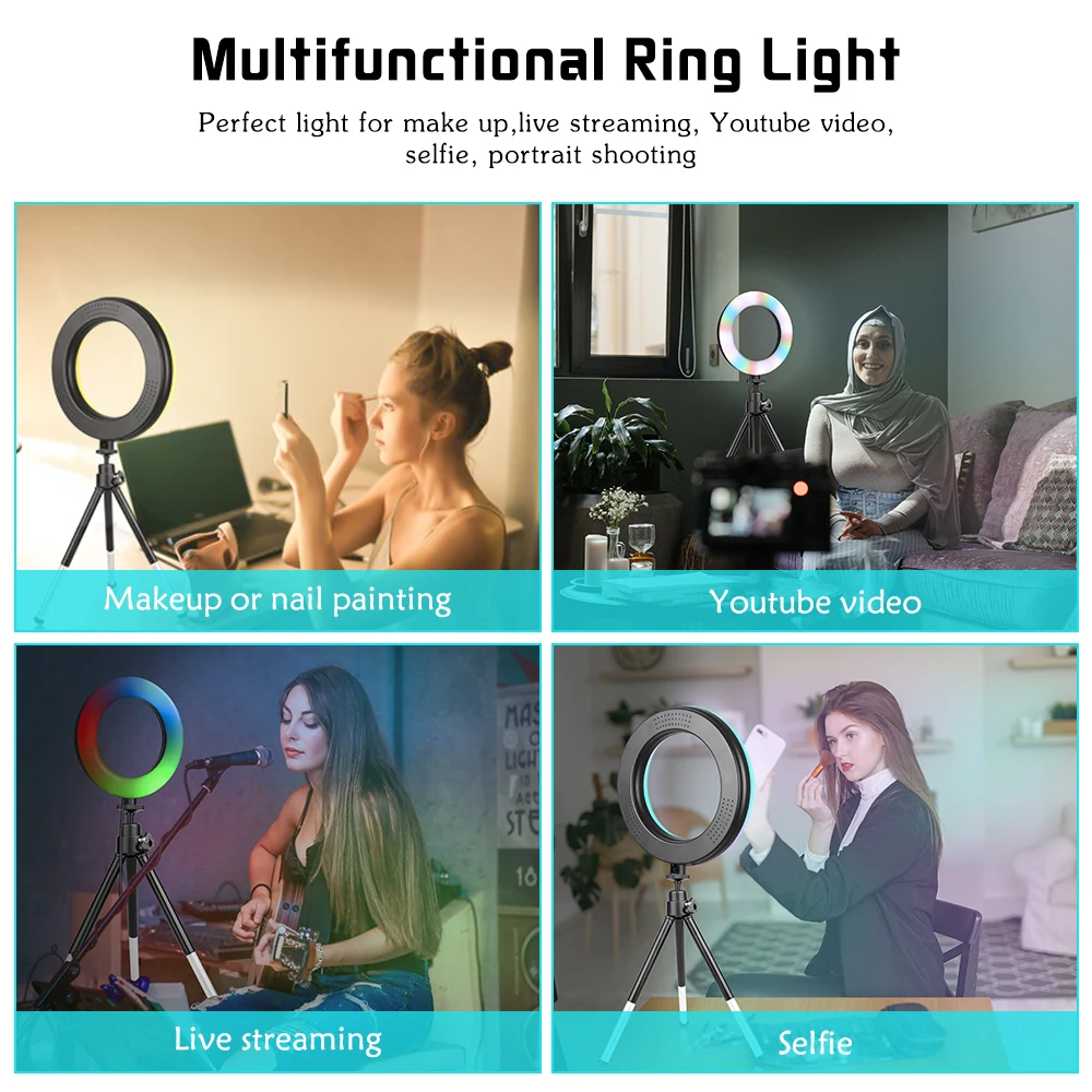 Rgb-кольцевая лампа 16 см, 6 дюймов, со штативом, с Usb зарядкой, светодиодная лампа для селфи, с регулируемой яркостью, для фотосъемки, для фотостудии
