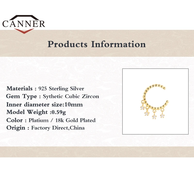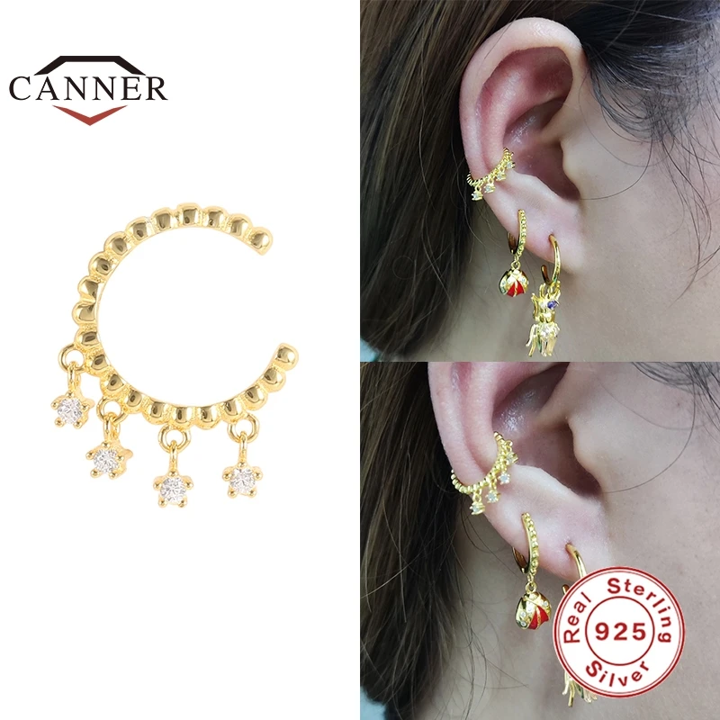 Женские серьги-клипсы CANNER из стерлингового серебра 925 пробы, креативные модные серьги-клипсы, серьги-каффы, не проколотые серьги, ювелирные изделия