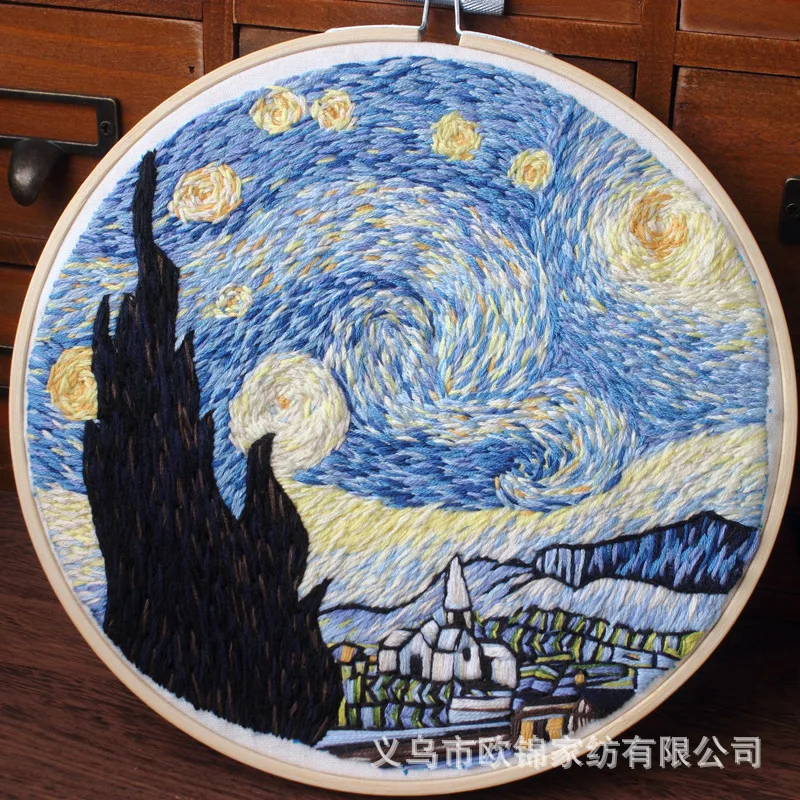 Набор для вышивки Звездная ночь, сделай сам, Картина Ван Гога, рукоделие для начинающих, вышивка крестиком, искусство (без кольца)