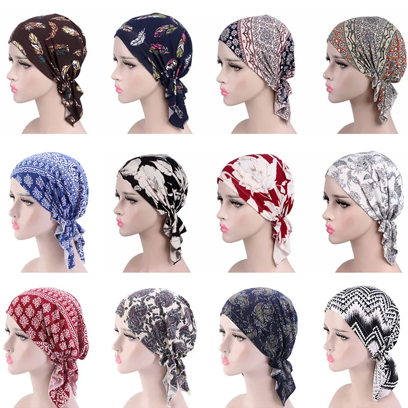 Женский мусульманский хиджаб, шапка-тюрбан с принтом в виде цветка и хиджаба, шарф для выпадения волос, завязывающаяся бандана, новинка 2021