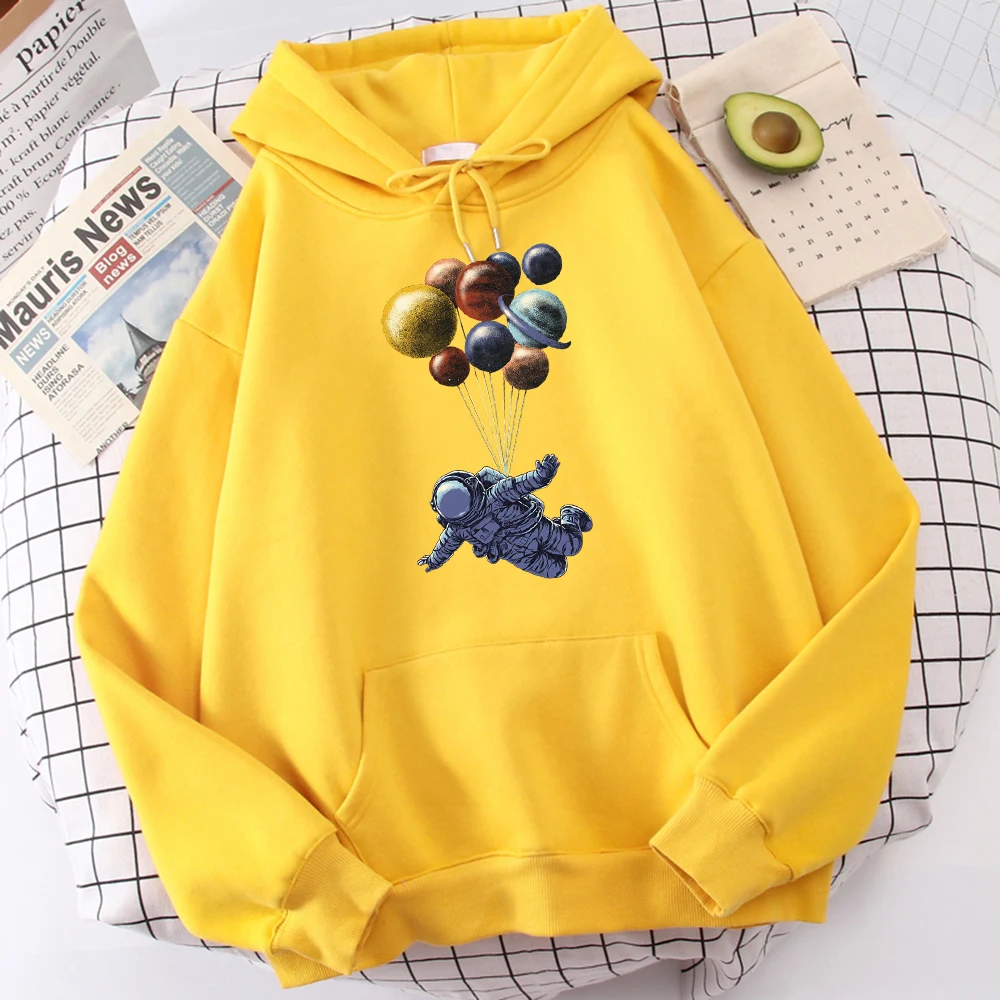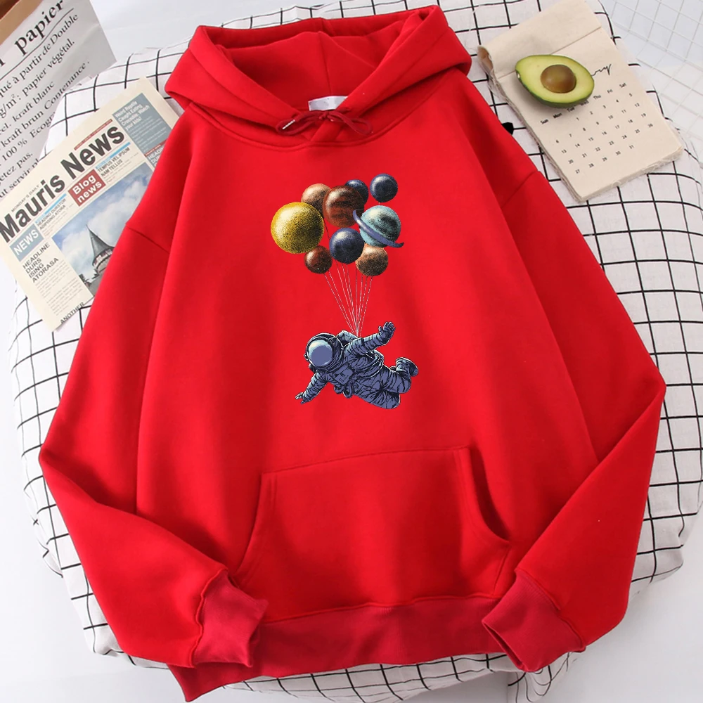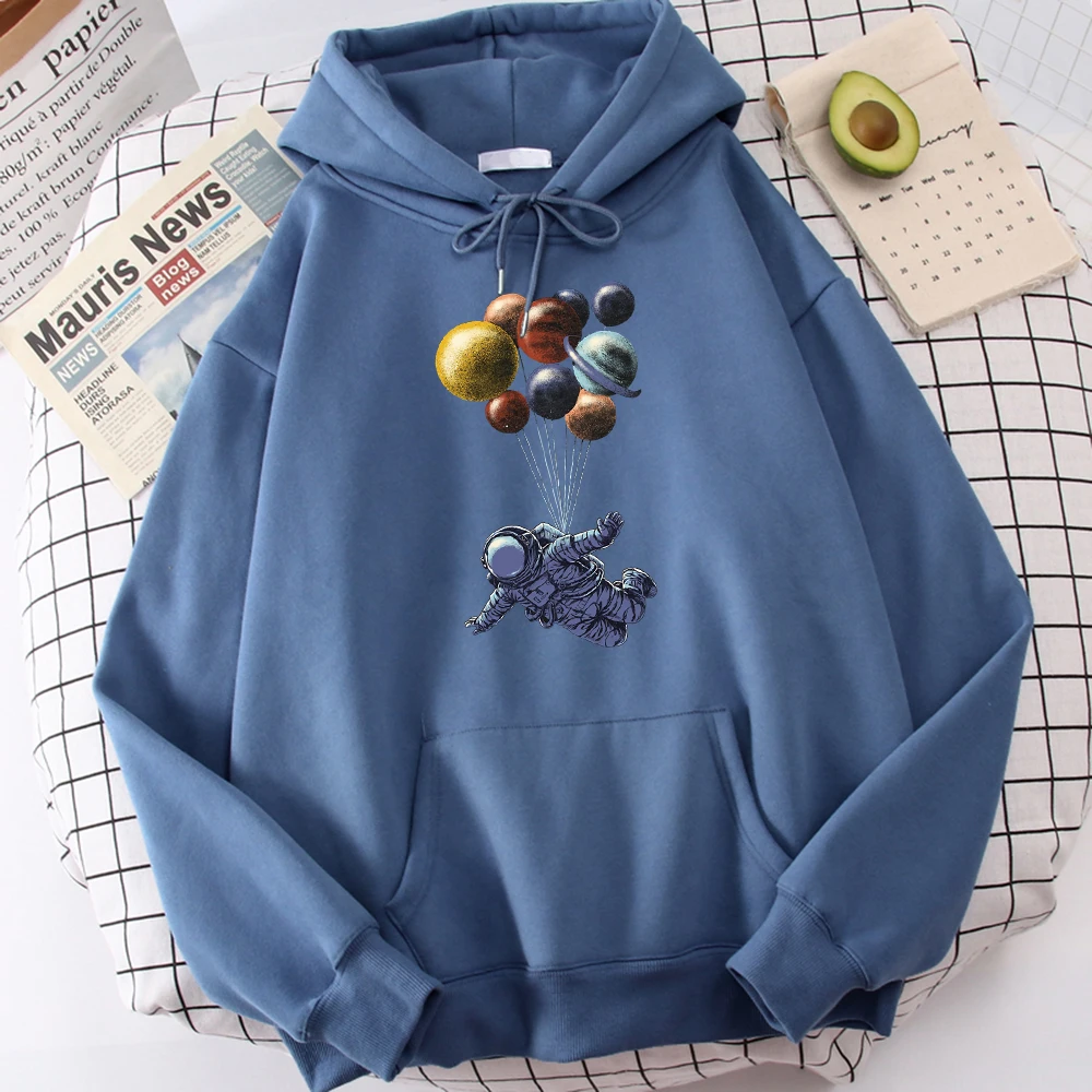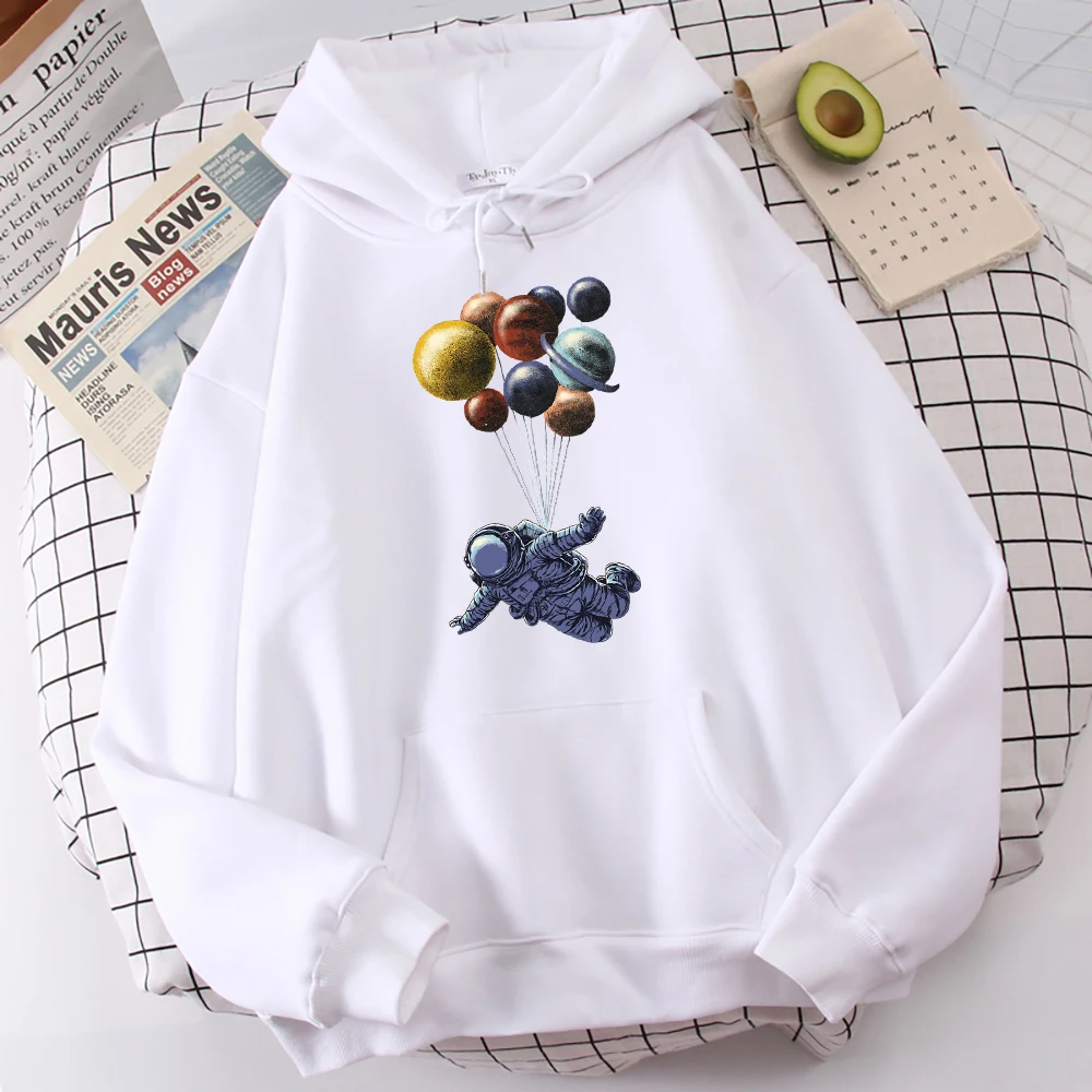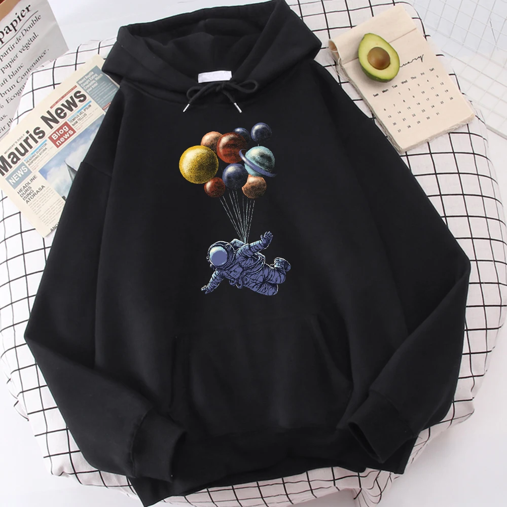Мужская осенняя повседневная толстовка с капюшоном Astronaut Space Travel Planet с принтом воздушных шаров, простой свитшот большого размера, уличная флисовая одежда