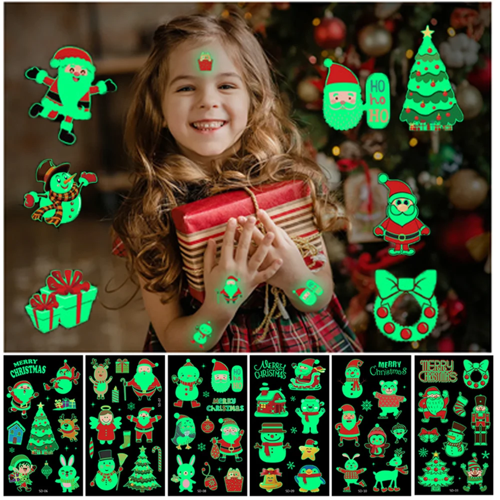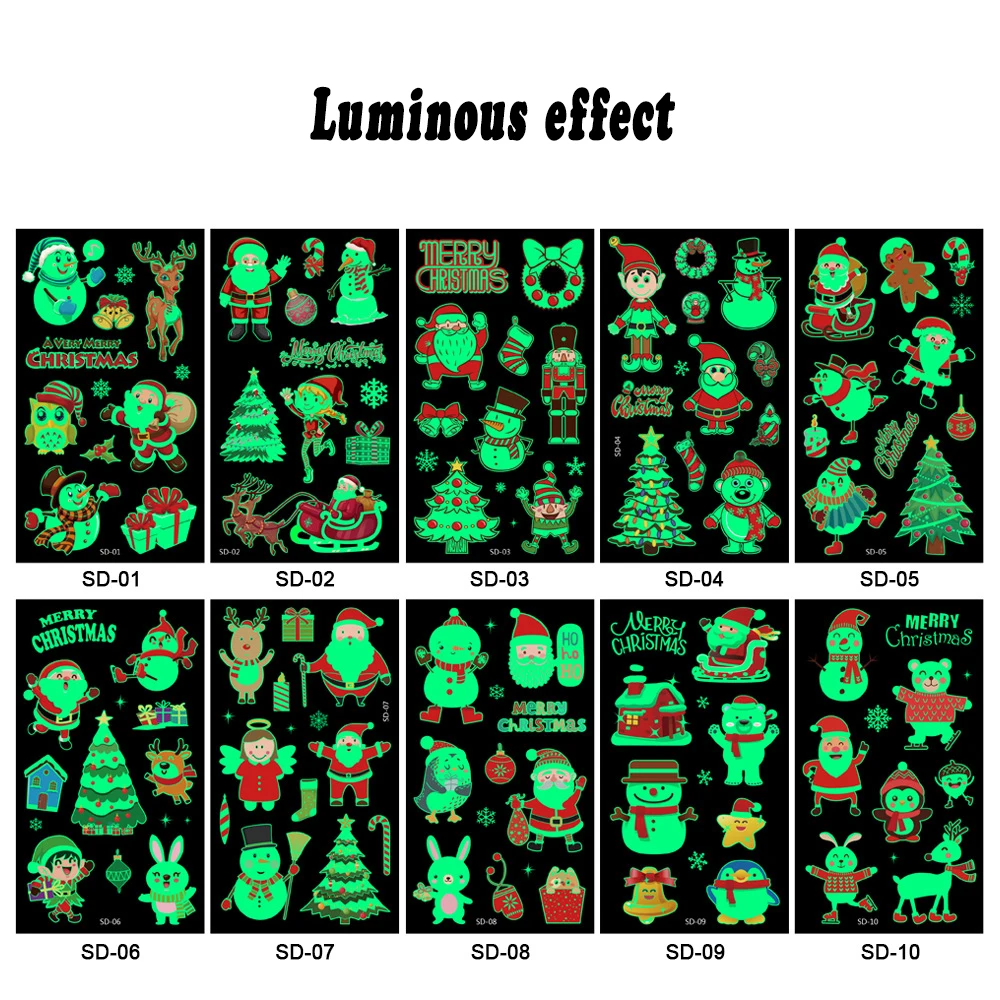 Рождественские светящиеся наклейки, детская временная татуировка, Рождественская елка, мультяшная Наклейка на стену, Санта-Клаус, украшения для рождественской вечеринки