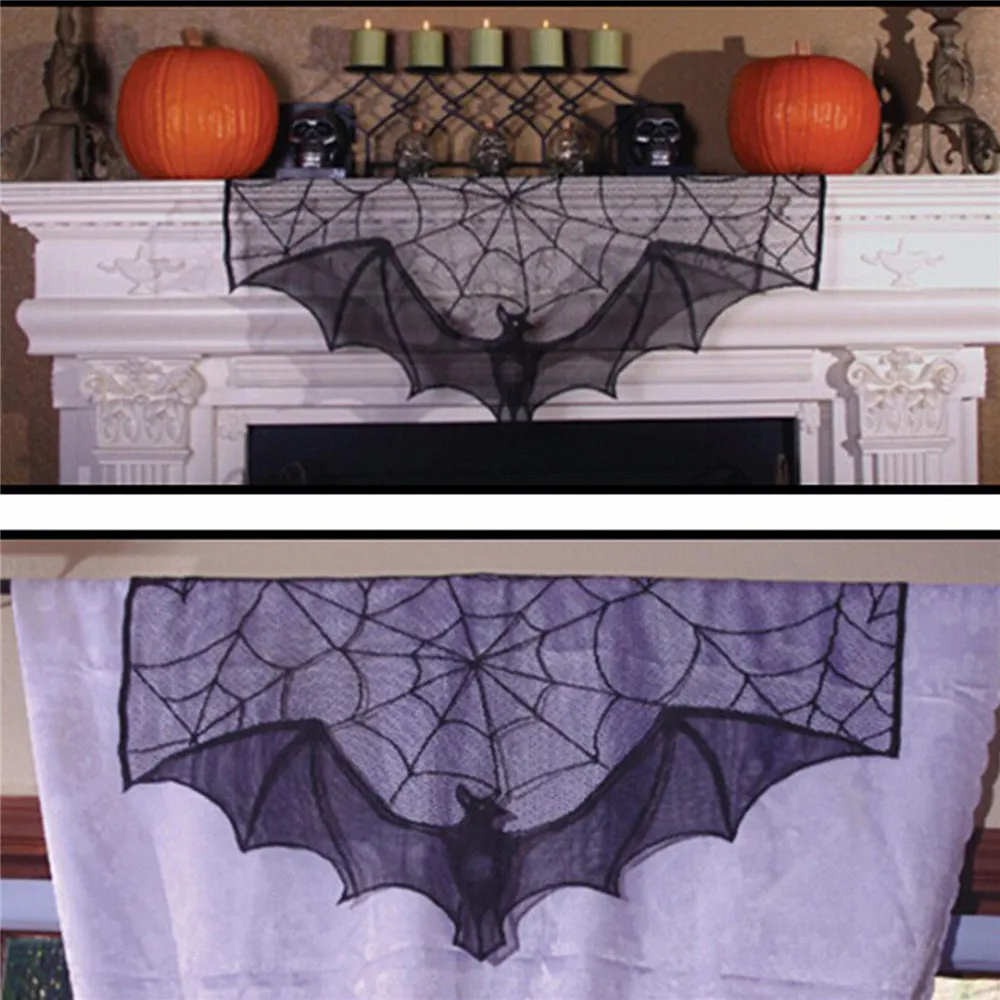 93x57 см, страшное Черное кружево для Хэллоуина, фотография летучая мышь, камин, накидка, шарф, накидка, ткань, призрак, праздничное украшение для вечеринки